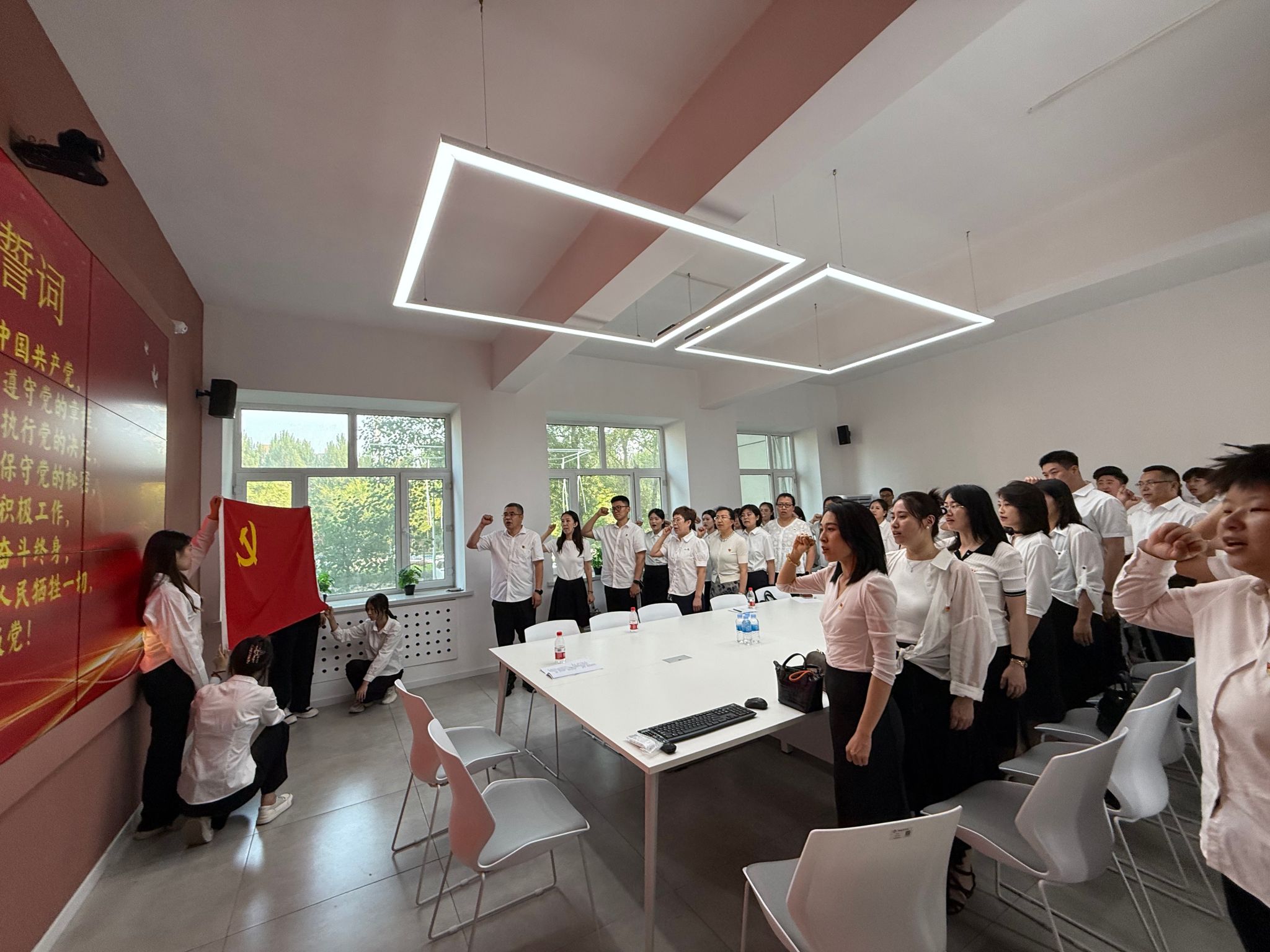 主题党课后,全体党员面向党旗庄严宣誓,铿锵有力的誓言回荡在会场,表达了全体党员对党的无限忠诚和坚定信念。通过重温入党誓词,每位同志进一步强化了党员身份意识,更加坚定了为党的事业奋斗终身的决心。