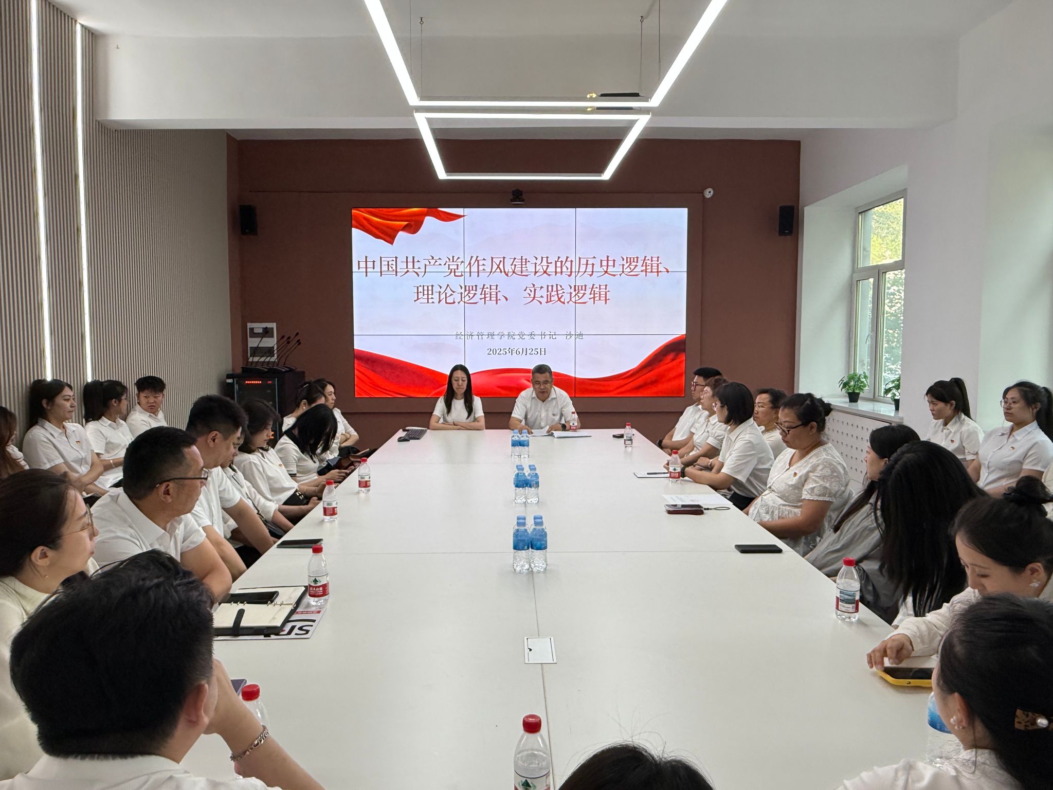 活动中,学院党委书记沙迪以《中国共产党作风建设的历史逻辑、理论逻辑、实践逻辑》为题,为全体党员讲授了一堂深刻而生动的主题党课。党课系统梳理了党的作风建设在不同历史时期的理论发展和实践探索,深入阐释了新时代加强作风建设的重要意义。沙迪强调,学校党委在2025年第8次会议上指出科学编制“十五五”规划是践行教育强国、教育强省建设目标要求的实际举措,是学校立足新发展阶段、贯彻新发展理念、服务新发展格局的战略性工程,事关学校和学院长远发展。经济管理学院全体党员要立足岗位做到高站位谋划、高质量推进、高标准落实;作风建设永远在路上,每位同志必须始终以严的标准、实的作风推动各项工作落实落地。