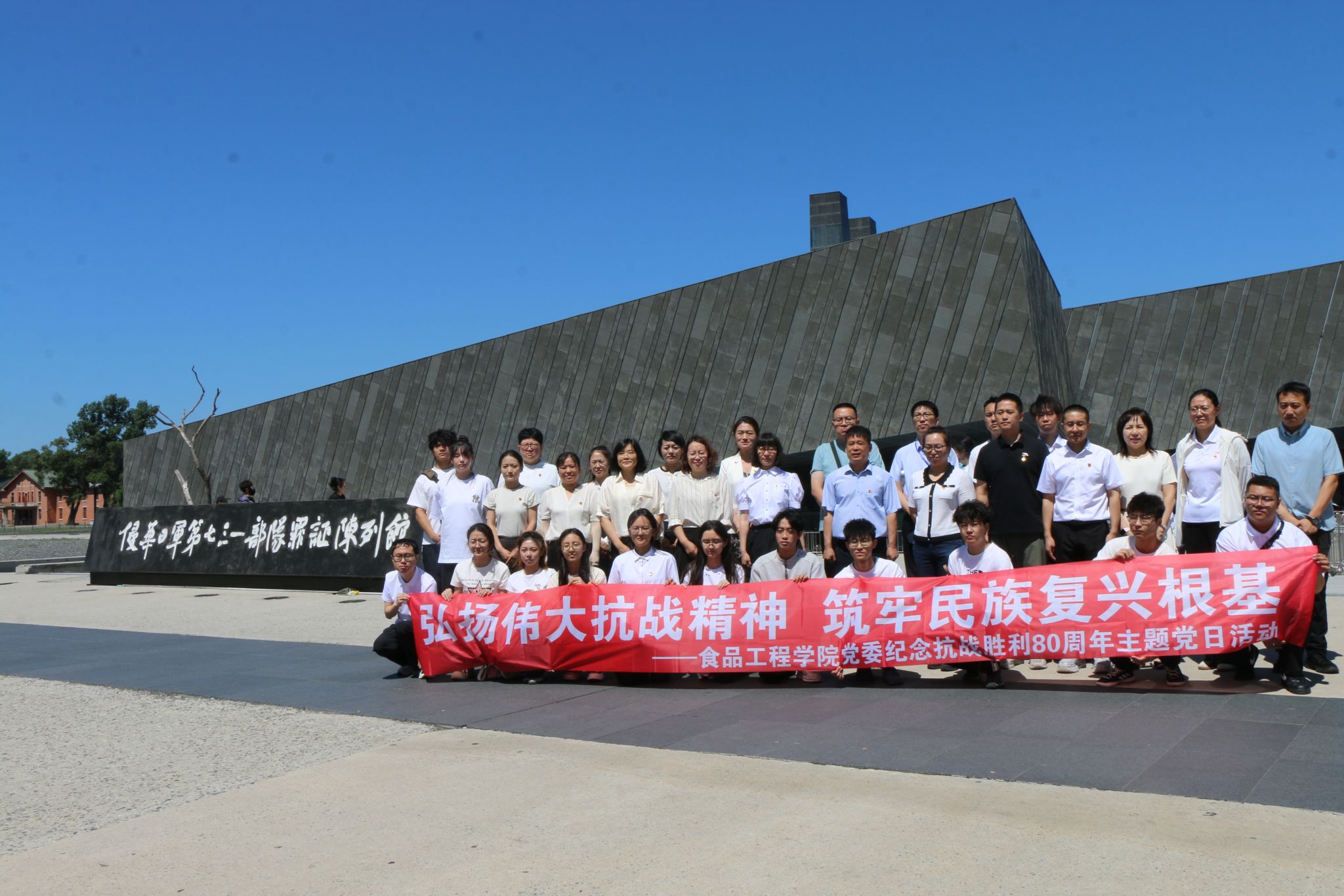 (文/李傲鹏)为铭记历史、缅怀先烈,弘扬爱国主义精神,将抗战精神融入学院新工科建设,激励党员师生为建设特色鲜明高水平应用型大学贡献力量,食品工程学院党委于7月6日组织全体党员及“欧倍尔杯”食品专业工程实践综合能力竞赛志愿者前往侵华日军第七三一部队罪证陈列馆,开展“弘扬伟大抗战精神 筑牢民族复兴根基”纪念抗战胜利80周年主题党日活动。