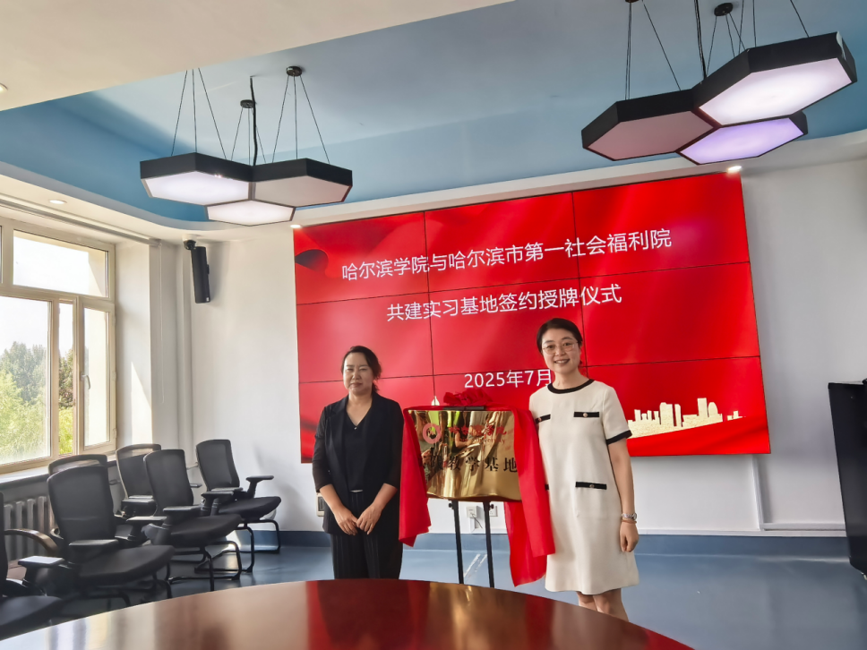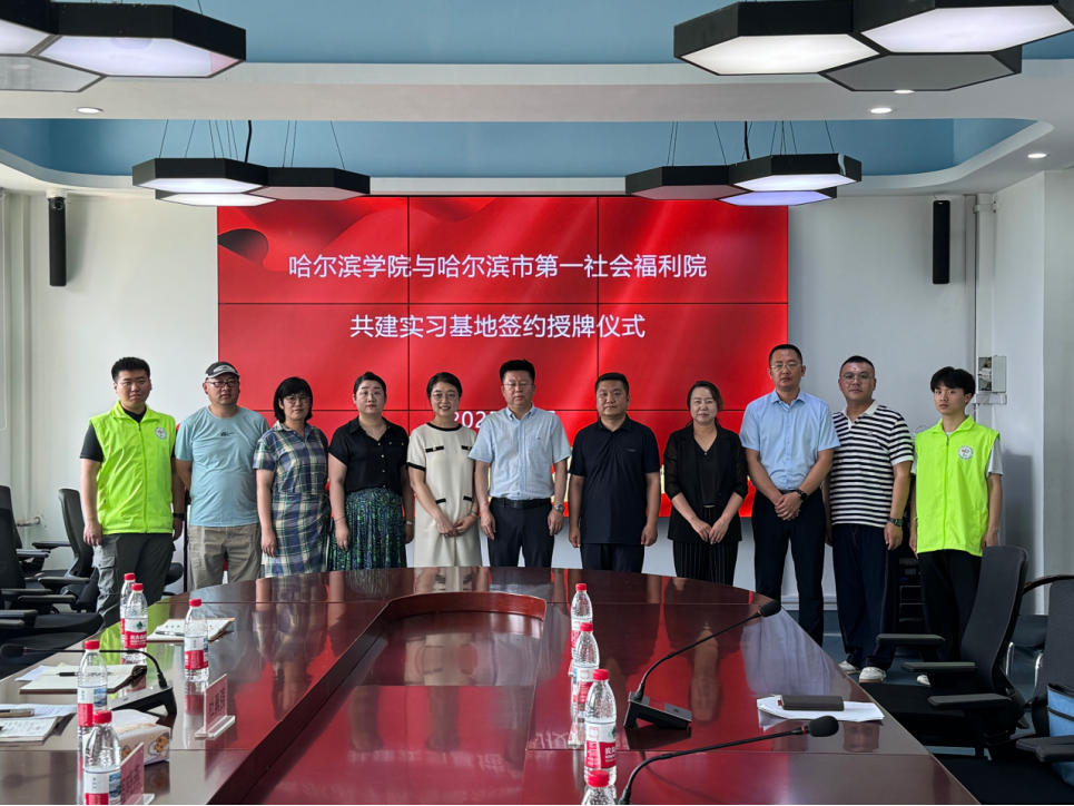 (文/潘思雨)7月11日,哈尔滨学院与哈尔滨市第一福利院正式举行共建实习基地、研究基地签约仪式。此次合作聚焦哈尔滨学院文法学院高素质应用型专业人才培养能力提升与实践教学环节强化,哈尔滨市民政局老龄规划处处长裴岩松,哈尔滨市第一福利院院长王亚茹、佟胜鹏、科长国健,哈尔滨学院文法学院党委书记杜真强、院长周晓燕及文法学院社会工作专业师生代表共同参会,仪式由社会工作专业系主任黄莹主持。