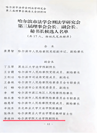 通过此次市法学会刑法学研究会换届选举,畅通了法学专业教师与司法实务部门的沟通渠道,其既为专业教师有针对参与哈尔滨经济社会发展和法治建设、平安建设中找准了切入点和着力点,同时也是文法学院长期以来重视推动学术与实践融合的重要体现。未来,我院教师将会以市法学会刑法学研究会为平台,持续为繁荣发展哈尔滨市法学事业、助推法治建设迈上新台阶作出新的、更大的贡献!
