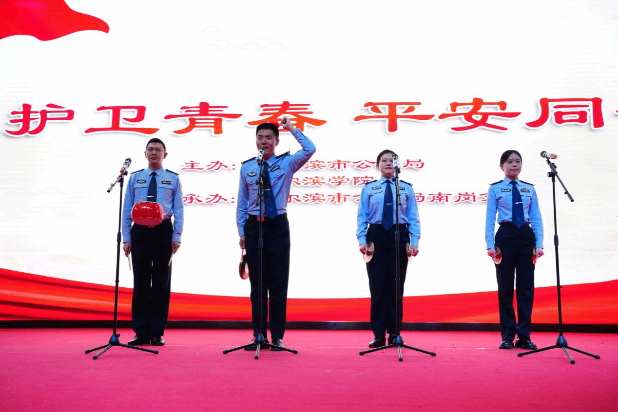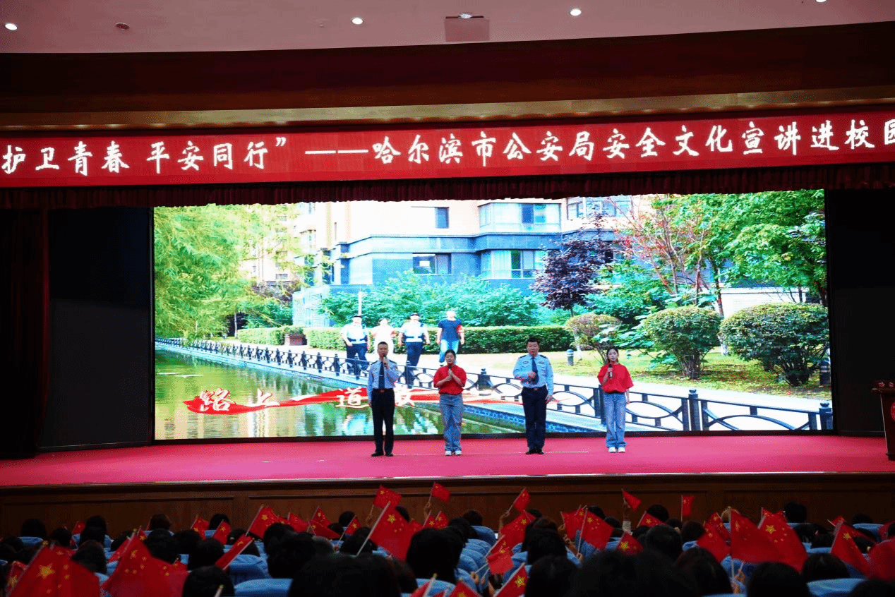 9月19日上午,“校园安全主题宣教日”系列活动第二场报告会在图书馆报告厅举行。副校长孙红镱、哈尔滨市网信办副主任市公安局新闻宣传处处长马晓红、市公安局政保支队政委李树志、市公安局新闻宣传处督查专员王海军、市公安局新闻宣传处副处长金刚、市公安局政保支队队长杨林涛、哈西派出所教导员郭峰,学校保卫处、学生处、教务处、图书馆负责同志,市公安局新闻宣传处、政保支队、刑侦支队、交管支队、禁毒支队、警务保障部、南岗分局、尚志市公安局有关同志和师生代表800余人参加活动。