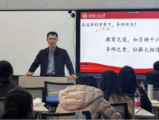 本次培训紧密结合《中华人民共和国学位法》《研究生导师指导行为准则》等政策要求,系统解读了国家对研究生导师队伍建设的战略定位,重点强调“心有大我、至诚报国”等教育家精神核心内涵,明确导师在思想政治引领、学术规范把关、学生成长关怀等方面的“第一责任人”职责。同时,李教授围绕我校研究生培养高质量发展提出具体建议,招生环节可通过制定导师招生管理办法、限定导师指导名额、构建“校-院-导师-校友”联动机制优化选拔流程、提升生源质量;培养环节需聚焦分类培养改革,在专业硕士培养中深化产教融合,联合企业建设实践基地、推行“双导师制”并探索“实践成果答辩”模式,为学校研究生培养工作提供明确方向。