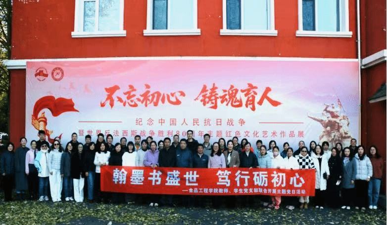 (文/王睿博)为深入推进党的创新理论武装,筑牢师生党员理想信念之基,扎实推动红色教育入脑入心、走深走实,10月22日下午,食品工程学院教师、学生党支部在欧亚校区艺术交流中心开展“翰墨书盛世 笃行砺初心”主题党日活动,师生党员共计70余人参观了“不忘初心、铸魂育人”——纪念中国人民抗日战争暨世界反法西斯战争胜利80周年主题红色文化艺术作品展。