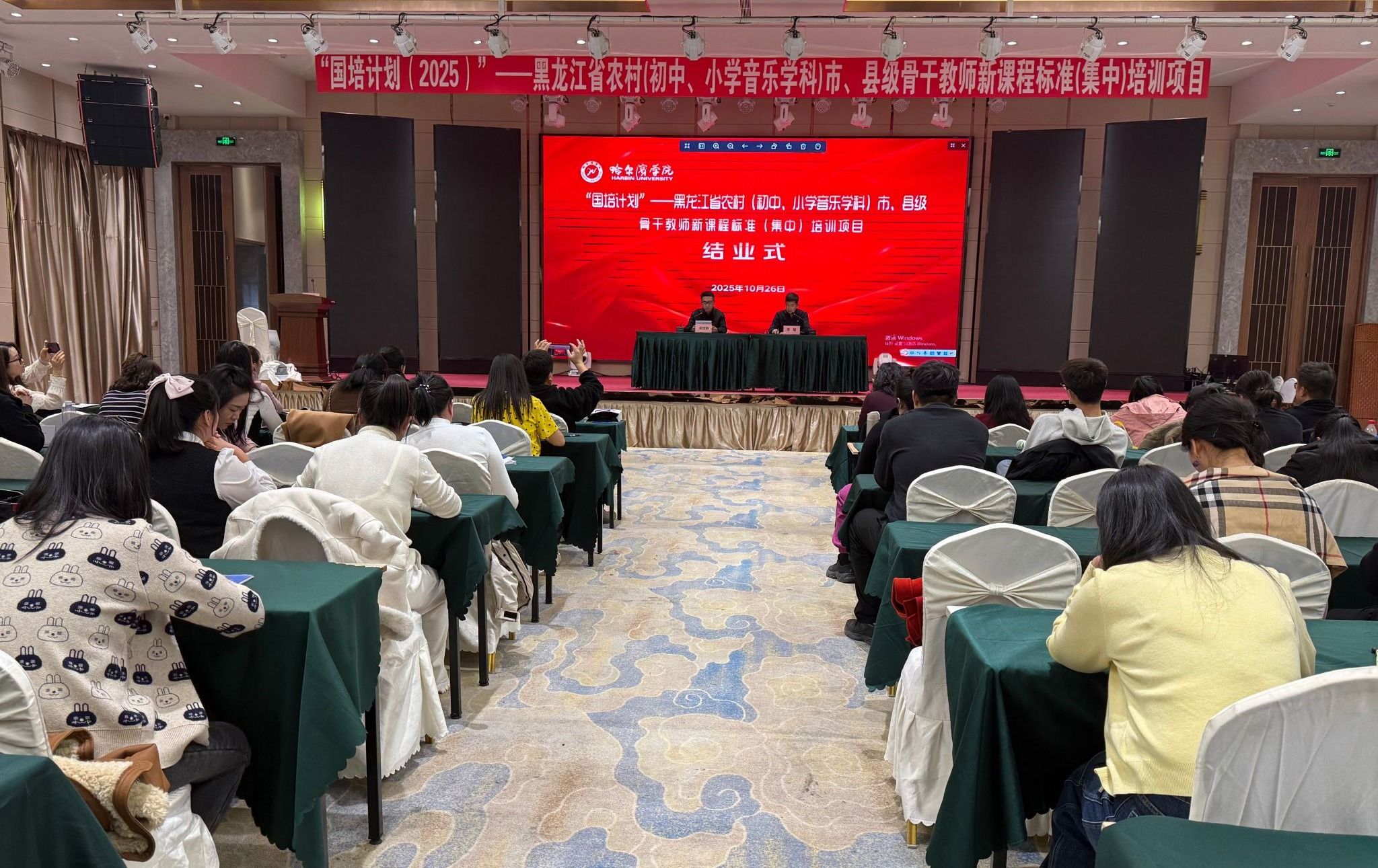 (文/李琳)10月26日下午,由哈尔滨学院继续教育学院承办的“黑龙江省农村(初中小学音乐学科)市、县级骨干教师新课程标准集中培训项目”结业仪式如期举行。本次国培项目为期15天,全省农村中小学音乐学科市县级骨干教师齐聚一堂,完成了一场聚焦新课标、深耕教学力的专题培训。