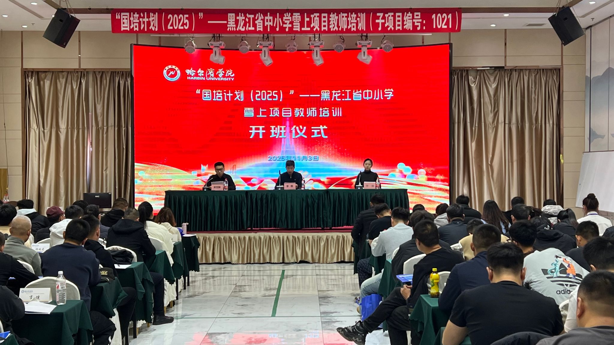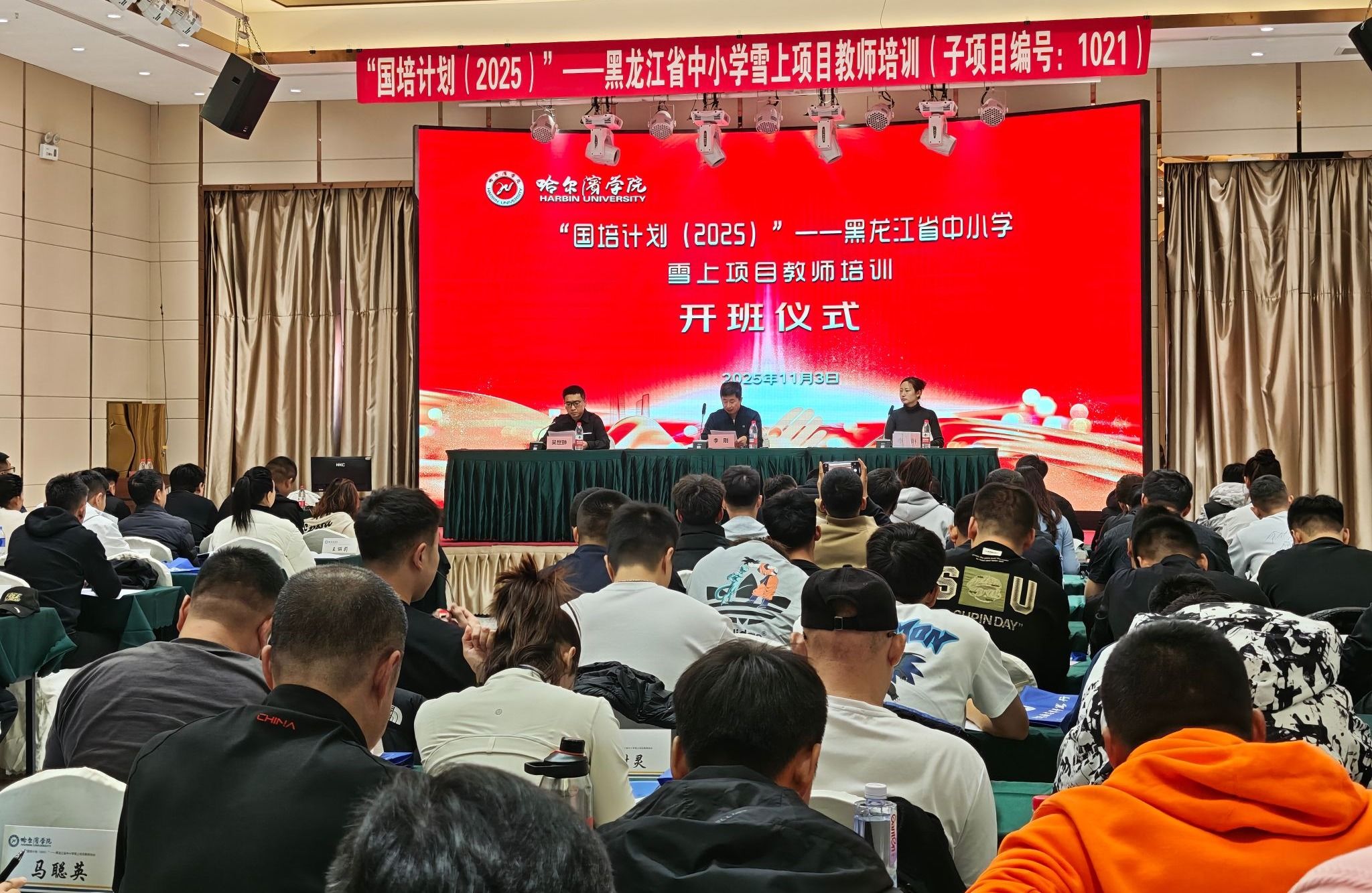 (文/李琳)为深入贯彻国家冰雪运动发展战略,加强黑龙江省中小学雪上项目师资专业化建设,推动冰雪运动教育在校园规范化、高质量开展,11月3日上午,“国培计划(2025)”——黑龙江省中小学雪上项目教师培训在哈尔滨正式开班,哈尔滨学院继续教育学院副院长李刚、培训中心主任吴世翀出席本次开班式,及来自全省各市(地)、县(区)的100名中小学体育骨干教师参加本次活动。