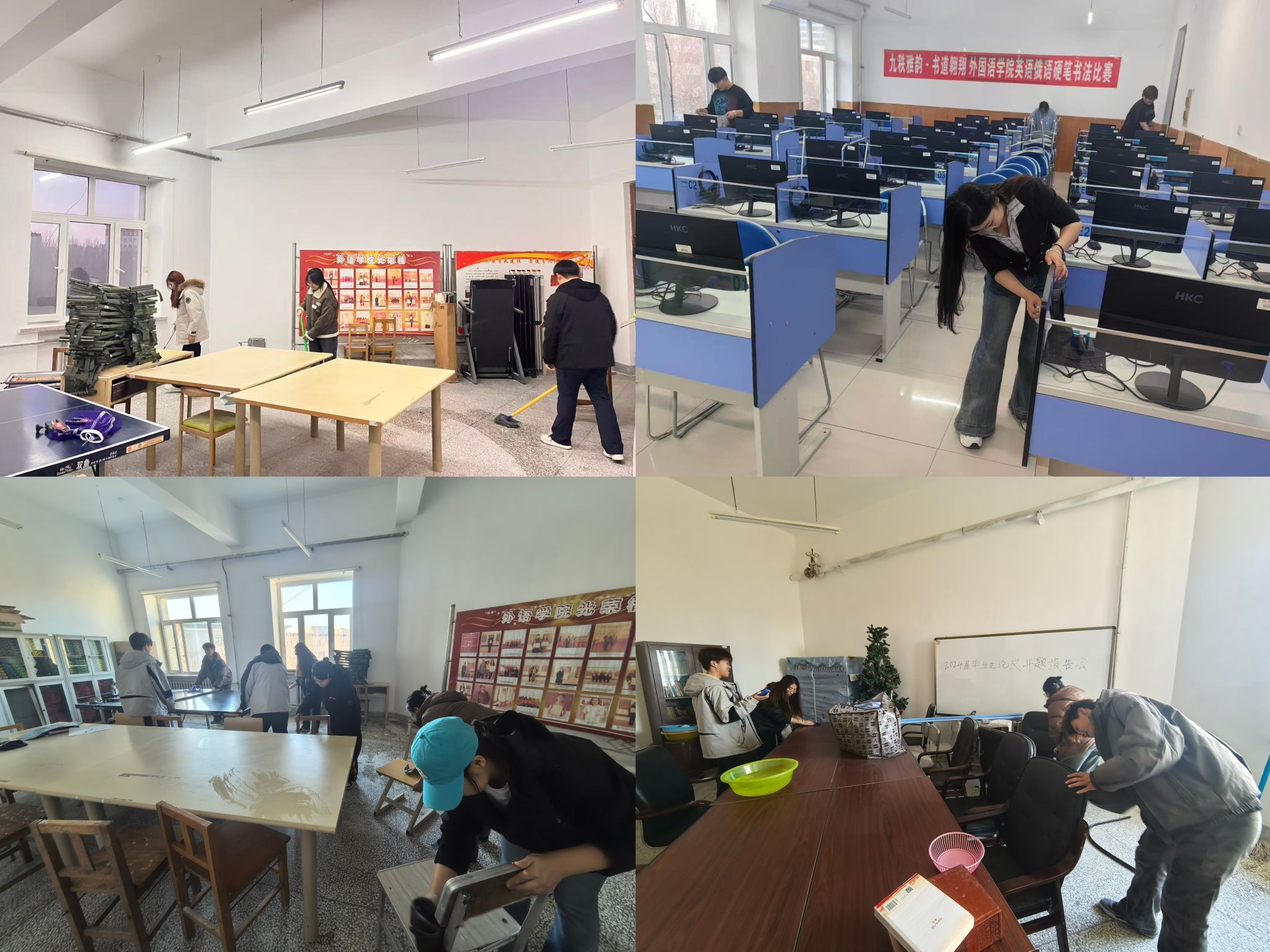 活动期间,学院科学规划、周密部署,采用学生干部带头、分批次分时段有序参与的形式。同学们手持清洁工具,精神饱满投入劳动。语音室内,细心擦拭设备台面、整理耳机线路,确保教学设施洁净如新;活动教室内,将桌椅归位摆放,对地面、门窗进行全面清洁。整个过程秩序井然、气氛热烈,充分展现外院学子团结协作、吃苦耐劳、乐于奉献的精神风貌。