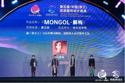 (文/鲁晓隆)10月28日,第五届中国(浙江)民族服饰设计展演活动在“中国畲族第一乡”——杭州市桐庐县莪山畲族乡龙峰村圆满收官。活动由浙江省民族宗教事务委员会、浙江省服装行业协会主办,杭州市民族宗教事务局、桐庐县人民政府承办。自2024年11月启动以来,共收到来自全国各地近800份参演作品,最终有20组优秀作品拿到展演入场券。哈尔滨学院艺术与学院服装与服饰设计专业选送作品《乌苏里船歌》在展演中获得金奖“云霓天工”称号,2025届毕业生孙博琳作品《MONGOL·解构》获得优秀奖。