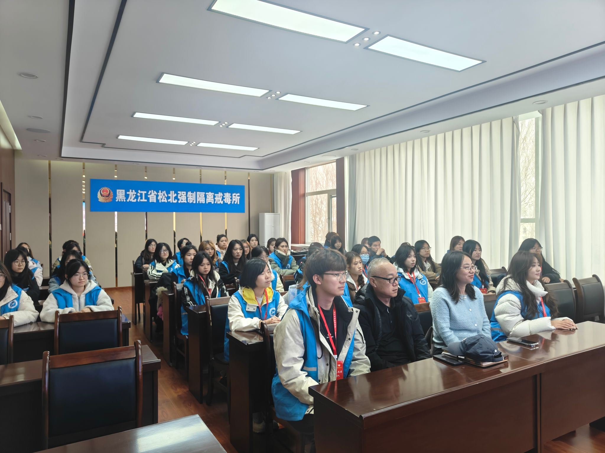 11月5日,在校团委与保卫处相关教师的带领下,校“冰城之光”大学生禁毒志愿者代表40余人,前往黑龙江省松北强制隔离戒毒所参观学习。在民警的引导下,师生依次走进戒毒人员生活区、康复训练中心、戒毒医疗中心、心理咨询中心及教育矫正中心。规范整洁的生活环境、专业系统的戒治设施,使大家直观了解到戒毒人员从生理脱瘾到心理康复的全流程工作,打破了对戒毒工作的陌生印象,也加深了对禁毒斗争严峻性的认知。