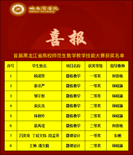 (文/林晓颖)2025年11月,由黑龙江省数学会数学教育专业委员会、哈尔滨师范大学主办,哈尔滨师范大学数学科学学院承办的首届高校师范生数学教学技能比赛在哈尔滨师范大学举办。我校教师教育学院学子凭借扎实的专业功底、精湛的教学技能和出色的临场表现,在赛事中脱颖而出。