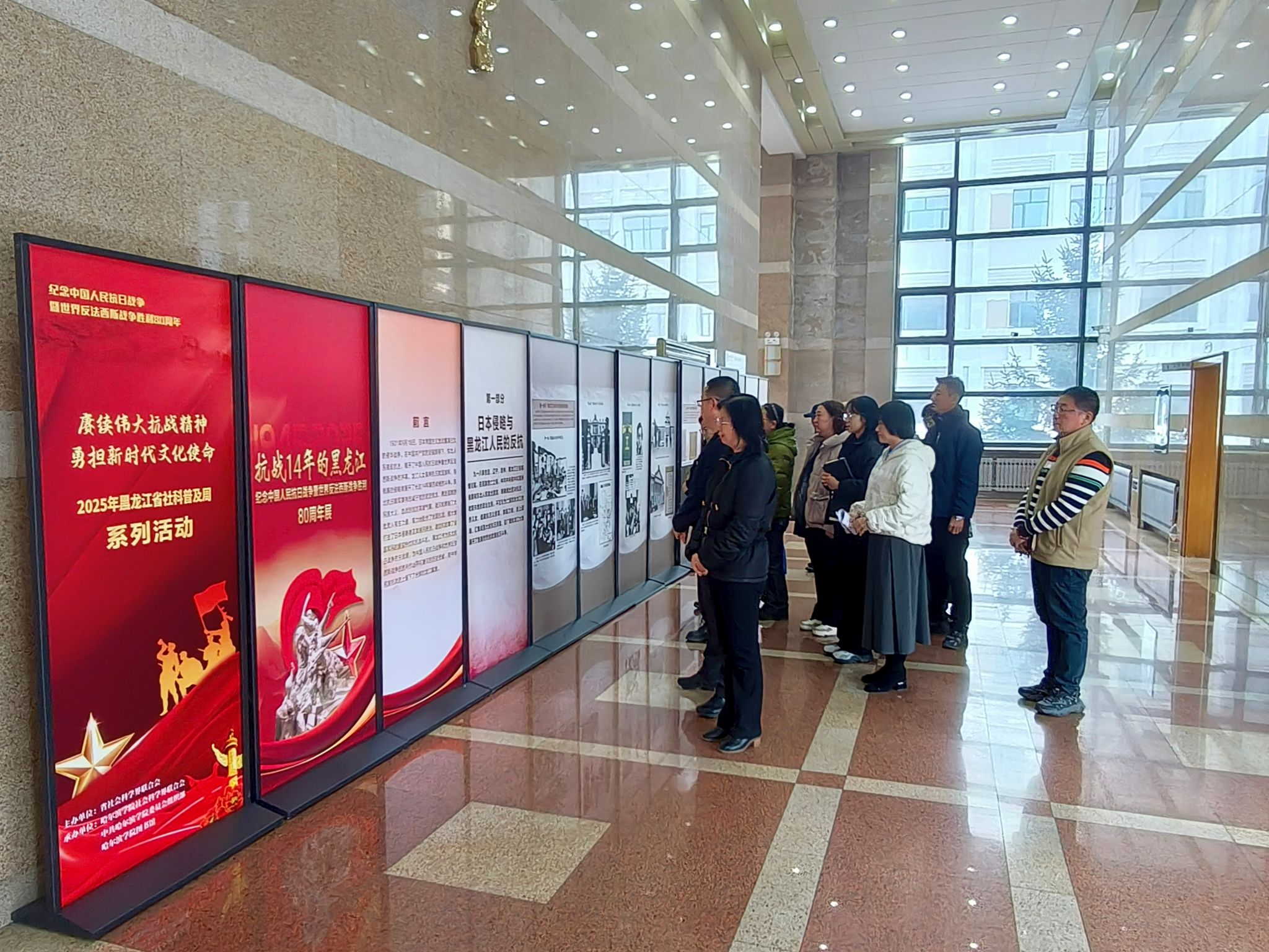 (文/朱娜娜)为纪念中国人民抗日战争暨世界反法西斯战争胜利80周年,11月12日上午,图书馆组织全体党员参观由省社科联主办,哈尔滨学院社科联承办的“抗战14年的黑龙江——纪念中国人民抗日战争暨世界反法西斯战争胜利80周年展”。