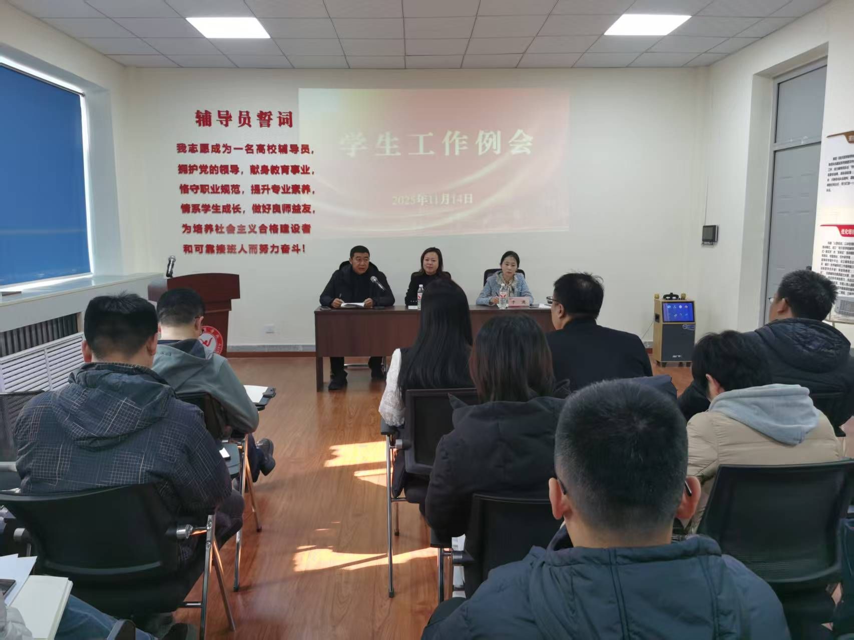 (文/张满)11月14日,学校在崇德楼辅导员之家召开学生工作例会,校党委副书记李娜出席会议并讲话。各二级学院党委(党总支)副书记、全体辅导员、学生处科级以上干部参加会议。会议由学生处处长于迪主持。