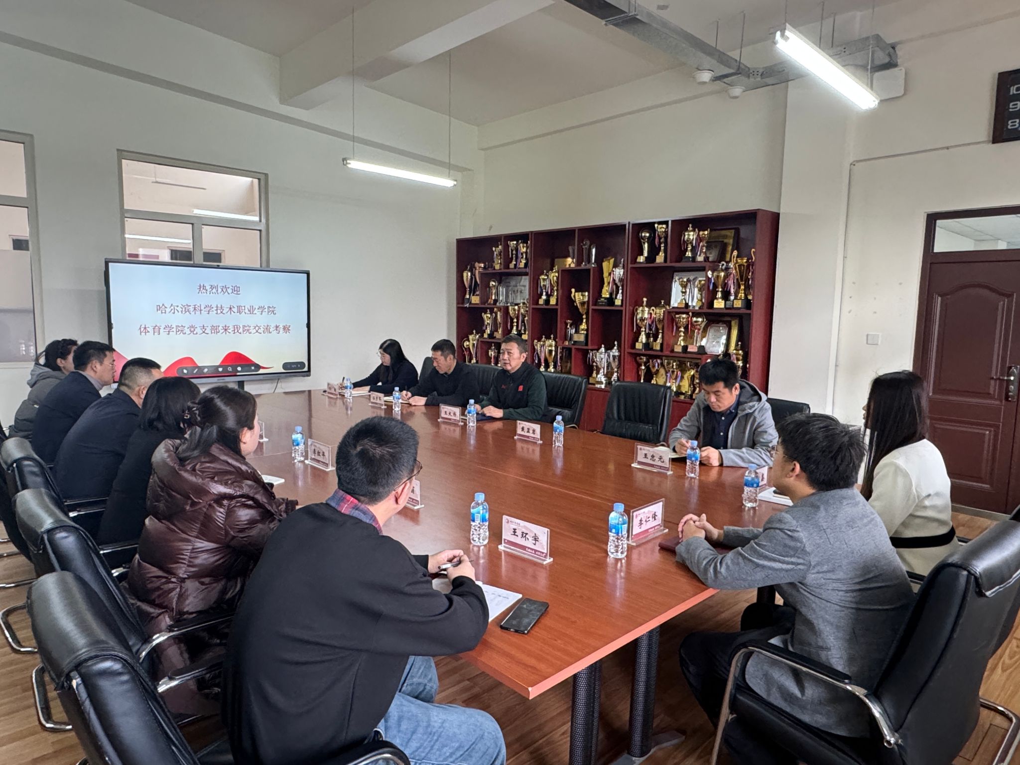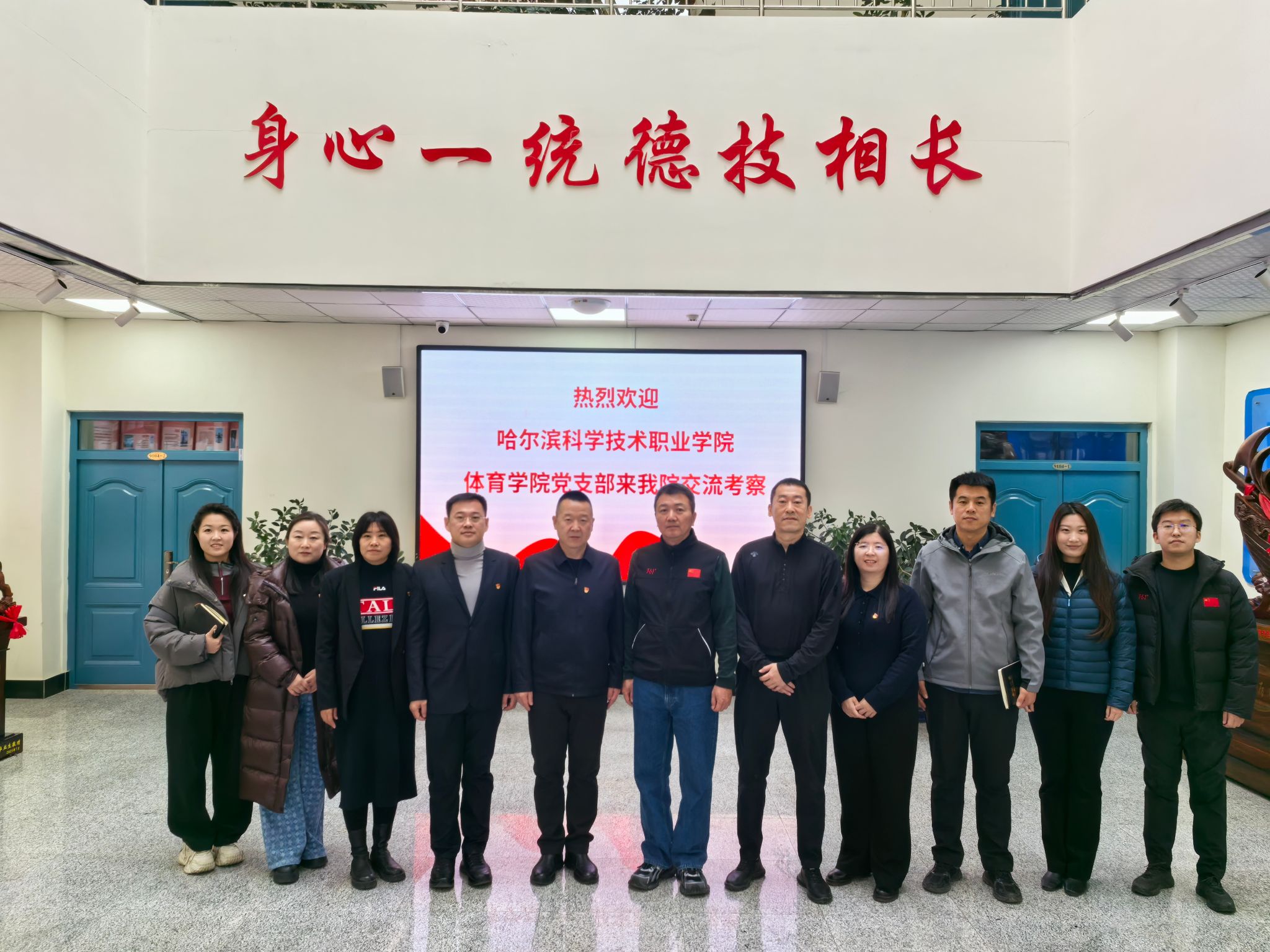 (文/潘昊鑫)为深化校际党建工作交流,推动体育学科高质量发展,11月20日,哈尔滨科学技术职业学院体育学院院长书记高阳、副院长白广洲、副书记李红平、社体专业主任张秀丽、学工办主任林晓月、辅导员王环宇一行6人莅临我院开展交流考察。我校体育学院党总支书记王大为、院长戴显岩、副院长任彦军、副院长冷超、副书记王忠元及辅导员李仁隆、潘昊鑫热情接待了兄弟院校。