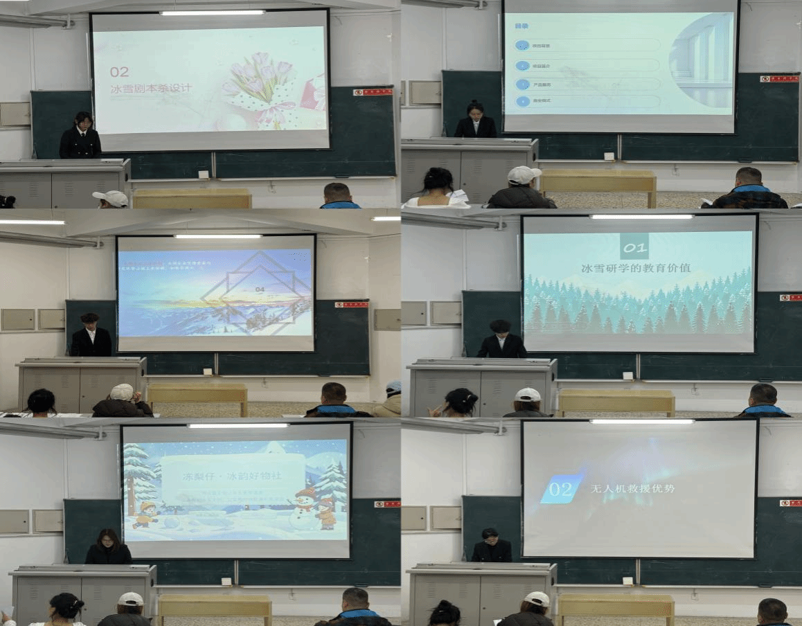 决赛现场气氛紧张而热烈,各团队依次进行项目展示。评委从规划科学性、实施可行性与现场表现力三个维度进行综合评审,最终评选出多项奖项。其中,“踏冰雪抗联路 绘红旅新图景”与“冻梨仔・冰韵好物社”荣获一等奖;“雪境满游・IP 微短剧”“冰雪文创设计与 IP 开发项目 — 冰雪剧本杀”及“冰雪无人机救援装备”获得二等奖;“冰凝文化 文创传韵”“冰雪微短剧文创设计与项目开发”“冰雪旅游研学课程设计”三个项目获评三等奖。