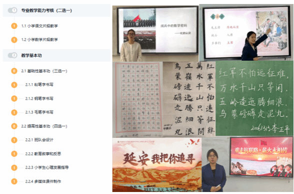 其次,将“弘扬东北抗联精神,建设红色文化育人体系”融入小学教育专业师范生教育教学能力培养过程,以“红色文化”为主题进行考核专业教学能力与教学基本功,考核内容涵盖小学语文、小学数学的片段教学、三笔字、班队会设计、教育叙事和反思、多媒体课件制作及小学生心理发展指导,并有效形成抗联精神教学资源库。