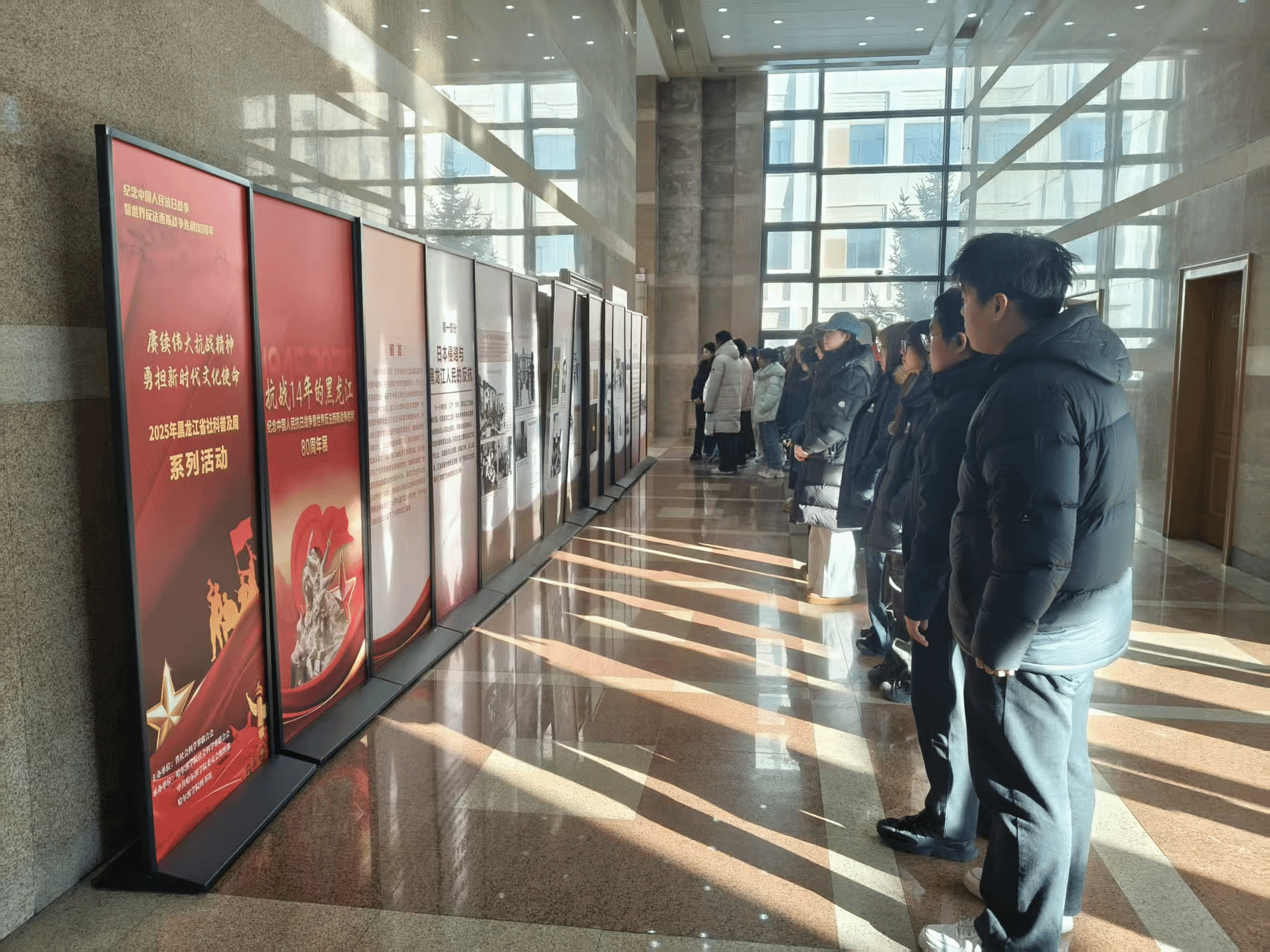 (文/罗逸文)为纪念中国人民抗日战争暨世界反法西斯战争胜利80周年,11月28日下午,校团委组织大学生参观由省社科联主办、哈尔滨学院社科联承办的“抗战14年的黑龙江——纪念中国人民抗日战争暨世界反法西斯战争胜利80周年展”。