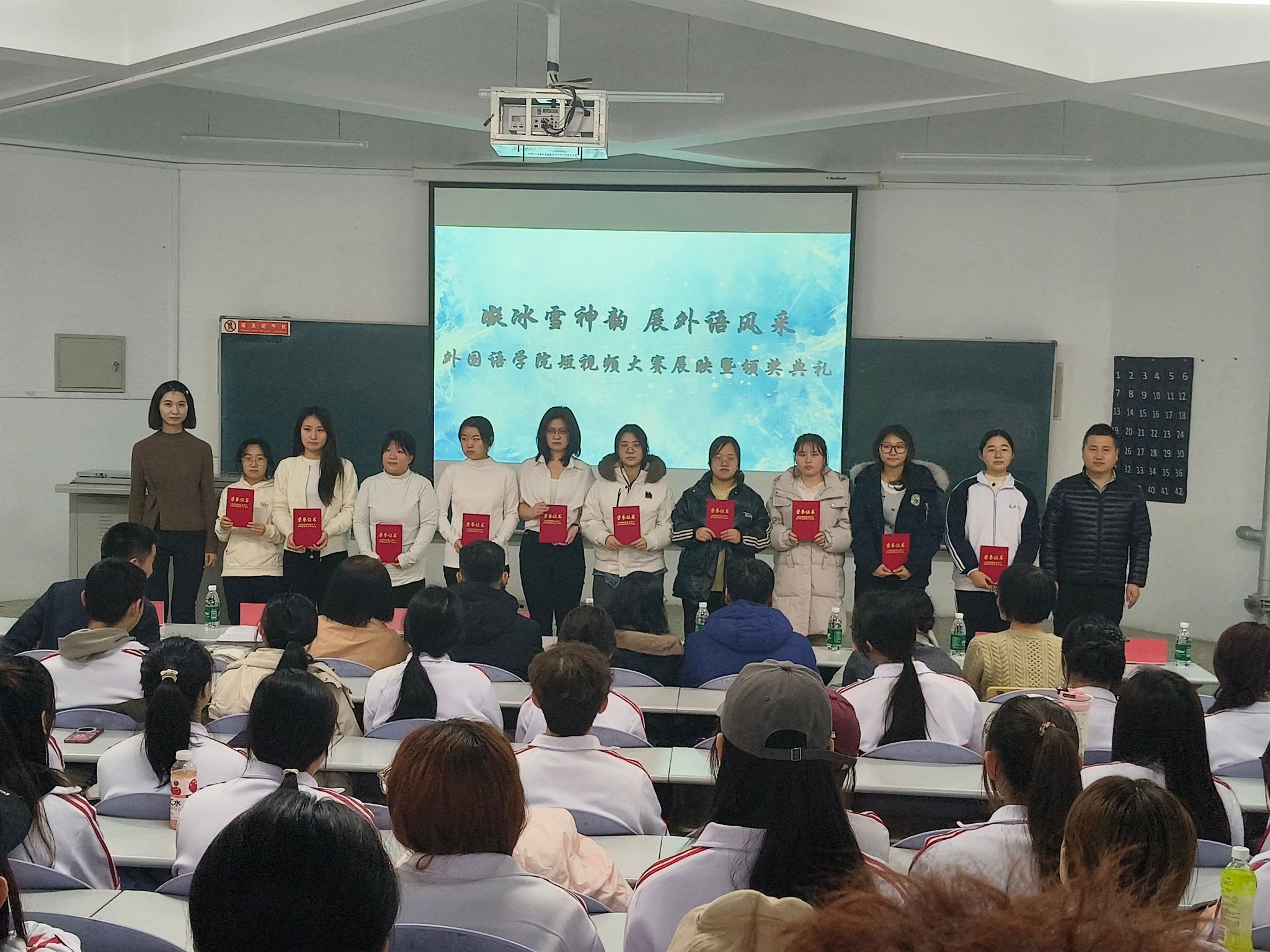 (文/王笑悦)为深入贯彻落实《哈尔滨学院践行“冰天雪地也是金山银山”重要理念 建设冰雪文化育人体系工作实施方案》精神,将冰雪文化有机融入外语人才培养与校园文化建设,12月2日下午,由校团委主办、外国语学院承办、MC奇迹英语社与俄语北极光社团协办的“镜观冰雪,言绎世界”冰雪育人短视频大赛优秀作品展映暨颁奖典礼在5112室顺利举行。校团委书记张玉娟、校团委副书记罗逸文、外国语学院领导班子成员及全体辅导员出席活动,与现场师生共同感受冰雪文化与外语魅力的生动交融。