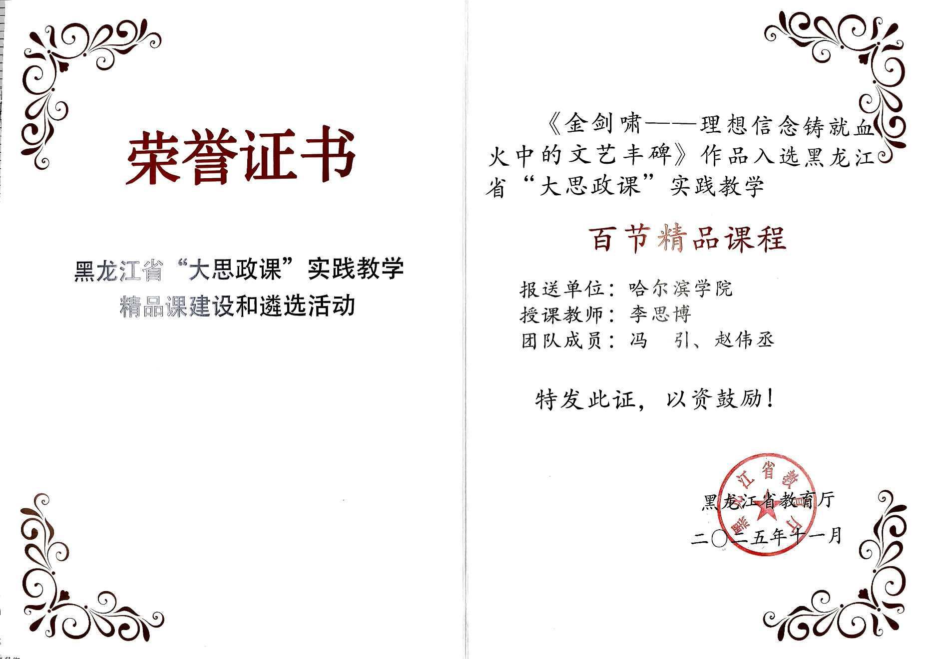 (文/冯引)近日,黑龙江省教育厅公布了“大思政课”实践教学精品课程建设遴选结果。我校马克思主义学院申报的《冰魂雪魄:从赵一曼的故事看伟大建党精神的龙江实践》(安慧玉)《北大荒的稻香传奇与拓荒者的精神丰碑——中国式现代化的生动实践》(顾博)《金剑啸——理想信念铸就血火中的文艺丰碑》(李思博)三门实践课脱颖而出,成功入选省级“大思政课”实践教学精品课程。这一成绩不仅是对我校长期深耕思政课实践教学改革的肯定,更是学校落实立德树人根本任务、推动“思政小课堂”与“社会大课堂”深度融合的生动缩影。