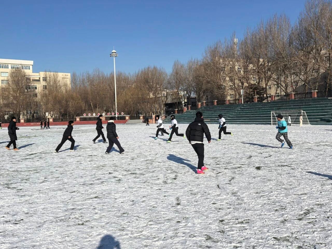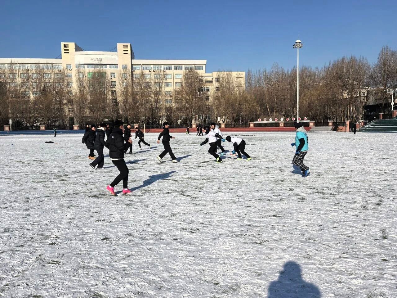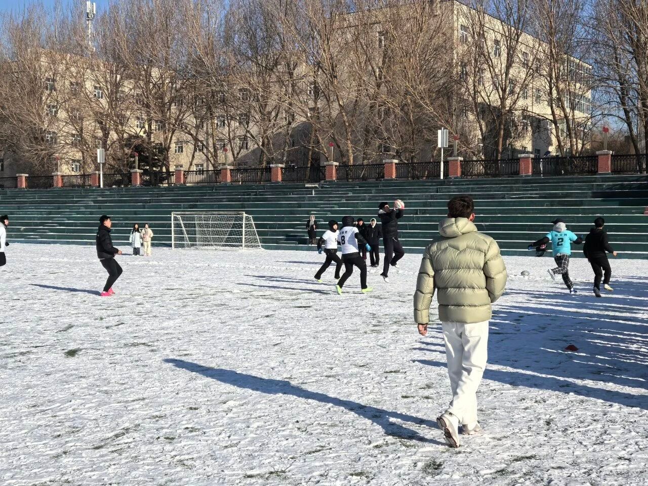 为深入推进学校冰雪文化育人体系建设,丰富冬季冰雪运动场景,激发同学们对新兴体育运动的兴趣,12月5日,体育学院在运动场举办雪地橄榄球兴趣启蒙交流赛。本次活动作为学校科技文化艺术节的特色环节,以“趣味参与、团队协作”为核心,吸引了来自各学院的学生踊跃参赛,在冬日校园里掀起了一股新兴运动热潮。
