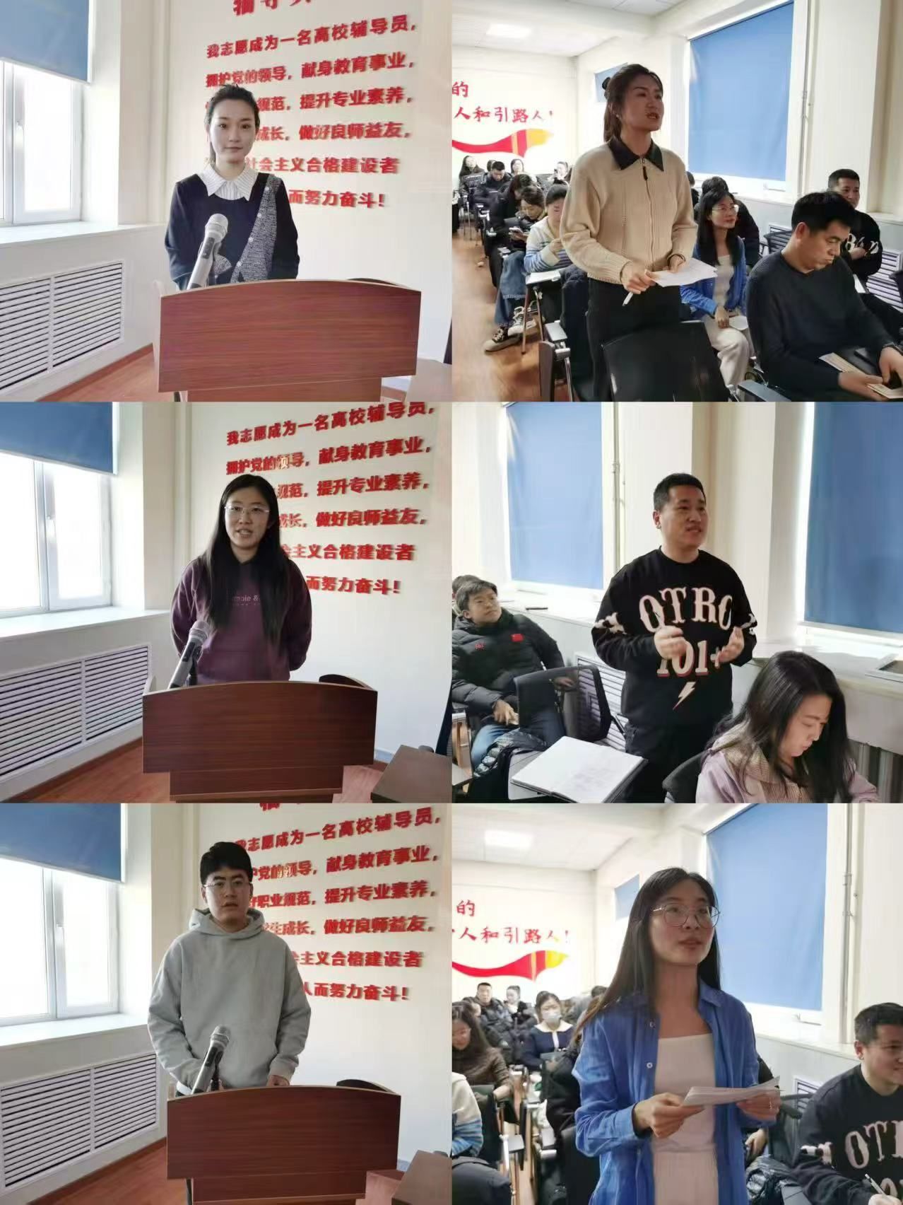 活动中,参加黑龙江省高校数字思政创新发展中心主办的“黑龙江省高校思想政治工作队伍数字安全素养专题研修班”的董佳欣、李子木老师,结合所学,从不同维度分享了高校网络阵地建设的挑战与实操应对经验。工作交流环节,文法学院、智能与建筑工程学院辅导员代表,围绕学业规划指导、情绪疏导、班级凝聚力建设等难点问题请教交流。现场辅导员深入研讨,结合实战经验给出针对性强、便于实施的建议,形成良好的互动共鉴氛围。