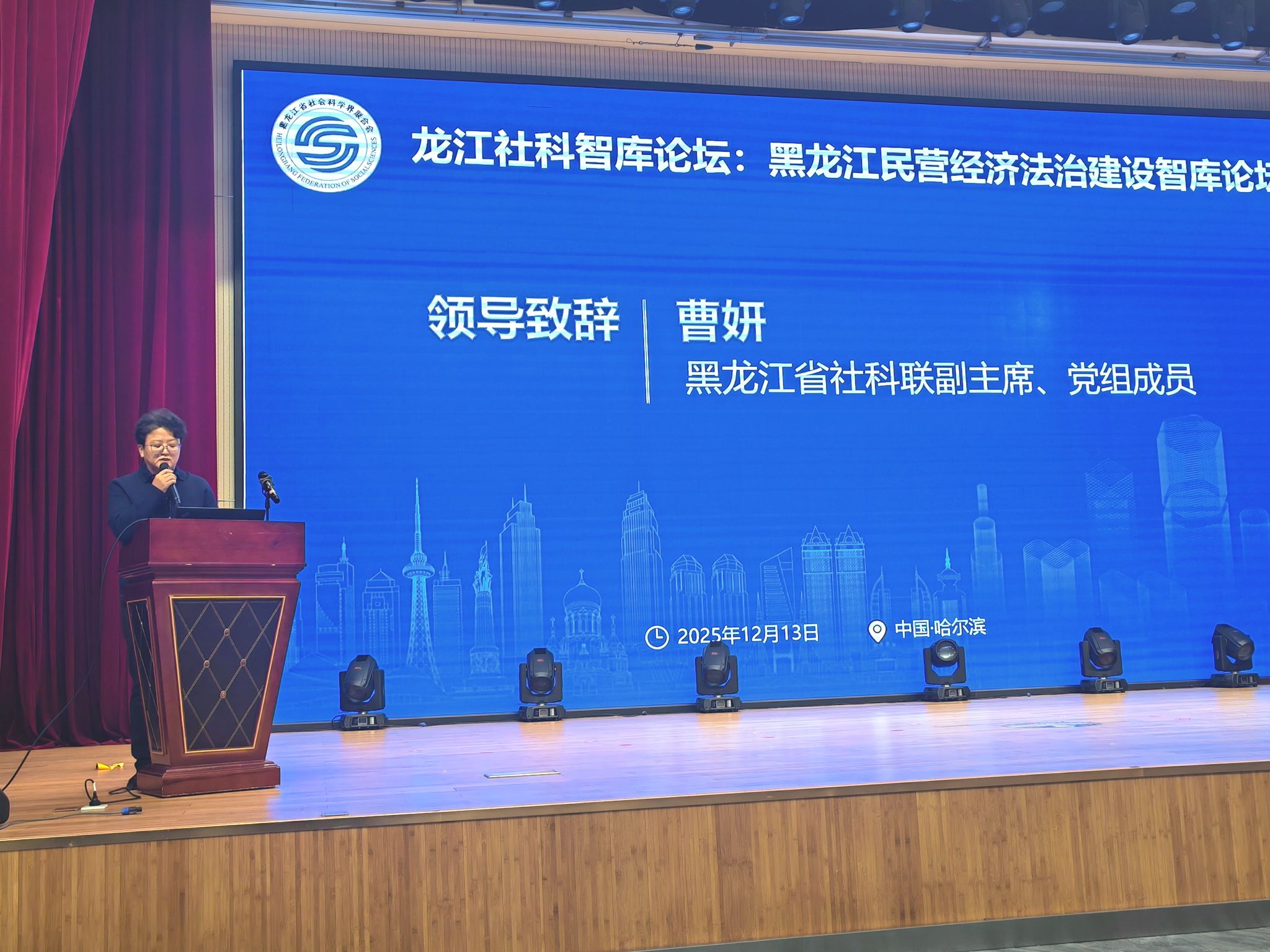 本次会议由黑龙江省促进非公经济发展学会常务副会长兼秘书长姚勇民主持。黑龙江省社科联副主席曹妍在致辞中强调,民营经济是龙江振兴发展的重要支撑,要以法治建设为抓手,破解民营企业发展中的制度性障碍,建议搭建政企法治沟通平台,完善民营企业权益保护机制,推动社科研究成果与民营经济发展实践深度融合,同时鼓励高校、智库机构围绕民营企业合规管理、财税法治等领域开展针对性研究,为龙江非公经济发展筑牢理论支撑。