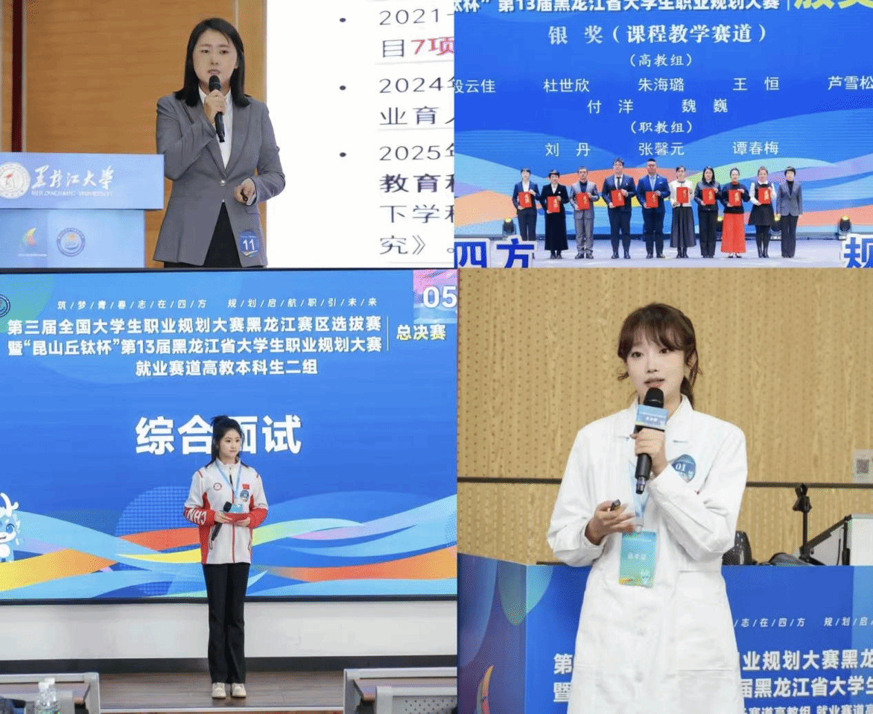 (文/徐颖欣)近日,以“筑梦青春志在四方,规划启航职引未来”为主题的第三届全国大学生职业规划大赛黑龙江选拔赛暨“昆山丘钛杯”第13届黑龙江省大学生职业规划大赛总决赛在东北林业大学举行。我校师生在赛事中表现亮眼,斩获课程教学赛道银奖一项、高教组就业赛道铜奖两项。