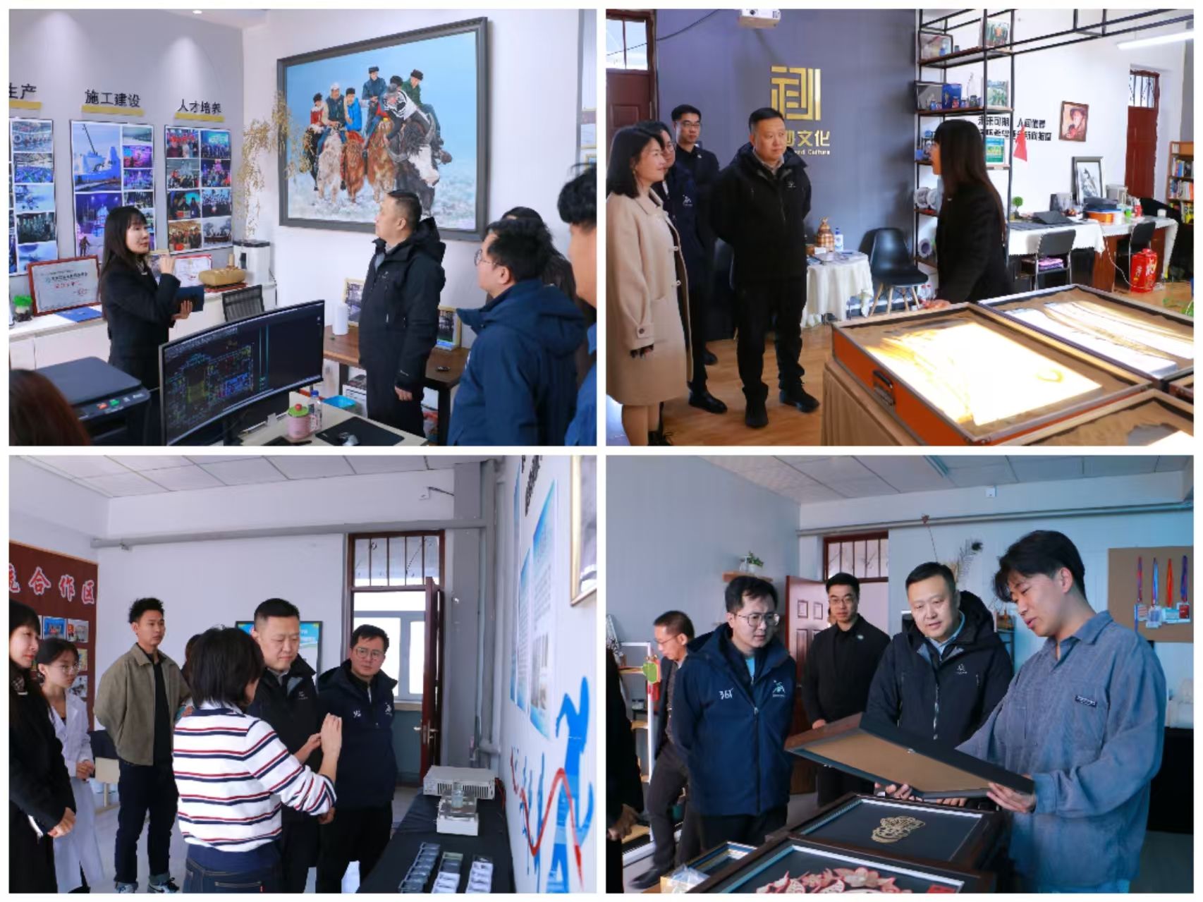 调研期间,李本辉一行先后走访园区代表性文创设计企业、“冰雪+双创”特色孵化企业,实地考察涵盖文创产品设计、数字媒体艺术、冰雪文旅经济等领域的在孵项目。目前,大学生创业园区已初步形成特色鲜明、业态多元的文创产业集群,调研团队深入企业工作室、创意设计展示区,与企业负责人面对面交流,详细了解项目运营模式、创意研发思路、市场拓展现状及发展瓶颈,精准对接合作契机,为后续校企联动赋能企业发展奠定基础。