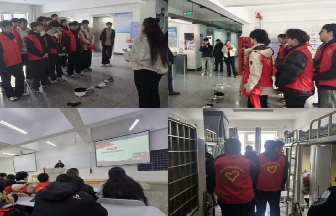 校园安全无小事,责任担当记心间。各基层团组织围绕法治教育、消防安全、反诈防骗、禁毒防艾等重点内容,开展“安全伴左右”系列宣传活动。志愿者通过摆放宣传展板、发放知识手册、现场案例讲解等形式,普及火灾逃生、灭火器使用、网络防诈等实用技能;深入宿舍开展安全隐患排查,重点整治违规电器、堵塞通道等问题;在课间高峰时段维护秩序,防范拥挤踩踏,用细心与坚守筑牢校园安全防线,让安全意识入脑入心。