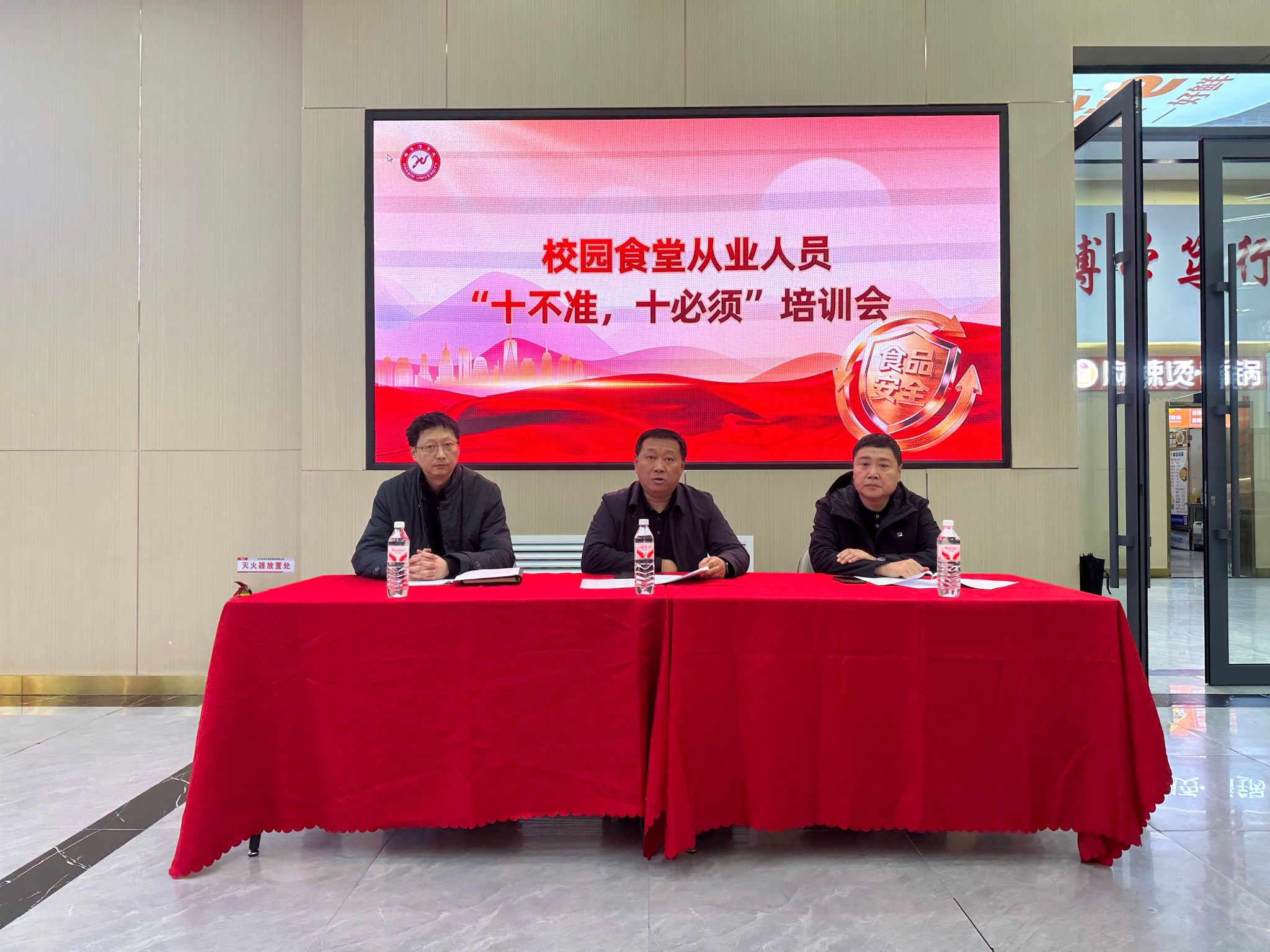 (文/赵强)为落实黑龙江省教育厅校园食品安全工作要求,强化食堂从业人员安全意识与操作规范,4月10日下午,哈尔滨学院后勤管理处饮食管理科在全校各食堂同步开展《校园食品安全“十必须”》与《学校食堂工作人员“十不准”》专题培训及考核。副校长于少鹏、后勤管理处处长王峰在茉莉餐厅主会场出席并讲话,饮食管理科全体人员、各食堂餐饮公司负责人及一线从业人员全员参与。