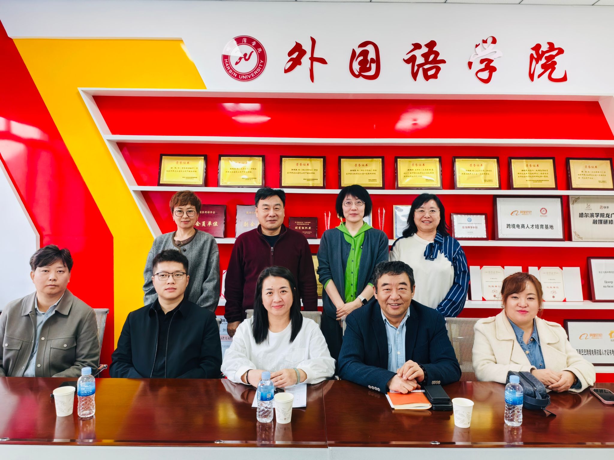 (文/袁晶)为进一步落实《黑龙江省新文科建设三年行动计划》“重点支持哈尔滨学院建设跨境电商产教融合优势特色专业集群”的工作部署,4月15日下午,外国语学院邀请黑龙江省跨境电子商务协会会长闫国富、阿里巴巴国际站黑龙江跨境电商服务中心任任泽红、黑龙江俄速通集智科技有限公司区域经理都宪宇、姜松岩、哈尔滨布卡网络科技有限公司直播电商培训师王天鹤等企业代表来校,聚焦跨境电商领域从业能力培养和情景化项目设计,深入研讨外语专业转型优化新方向和新路径。院长孙延弢、副院长袁晶、俄语系主任王黎明和商务英语专业系主任陶雪参加会议。
