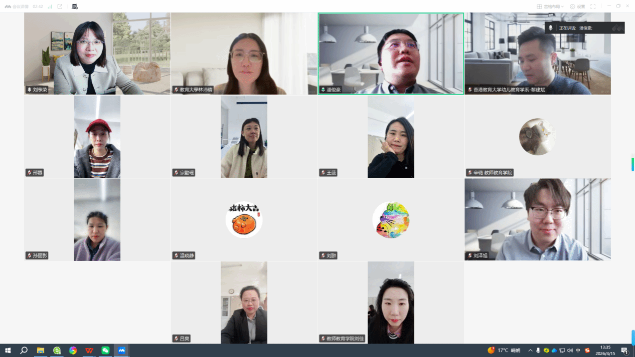 (文/刘佳)为深入贯彻落实国家关于学前教育高质量发展的战略部署,积极应对人口结构变化、教育数字化转型及新时代卓越幼师培养等时代命题,近日,我校与香港教育大学通过云端连线方式,成功举办“学前教育专业人才培养交流会”。两校学前教育领域专家、学科负责人及骨干教师跨越南北,共聚“云端”,共话幼教未来。会议由哈尔滨学院校长助理潘俊豪主持,教师教育学院院长刘亨荣、副院长吕爽及学前教育专业全体教师参会。