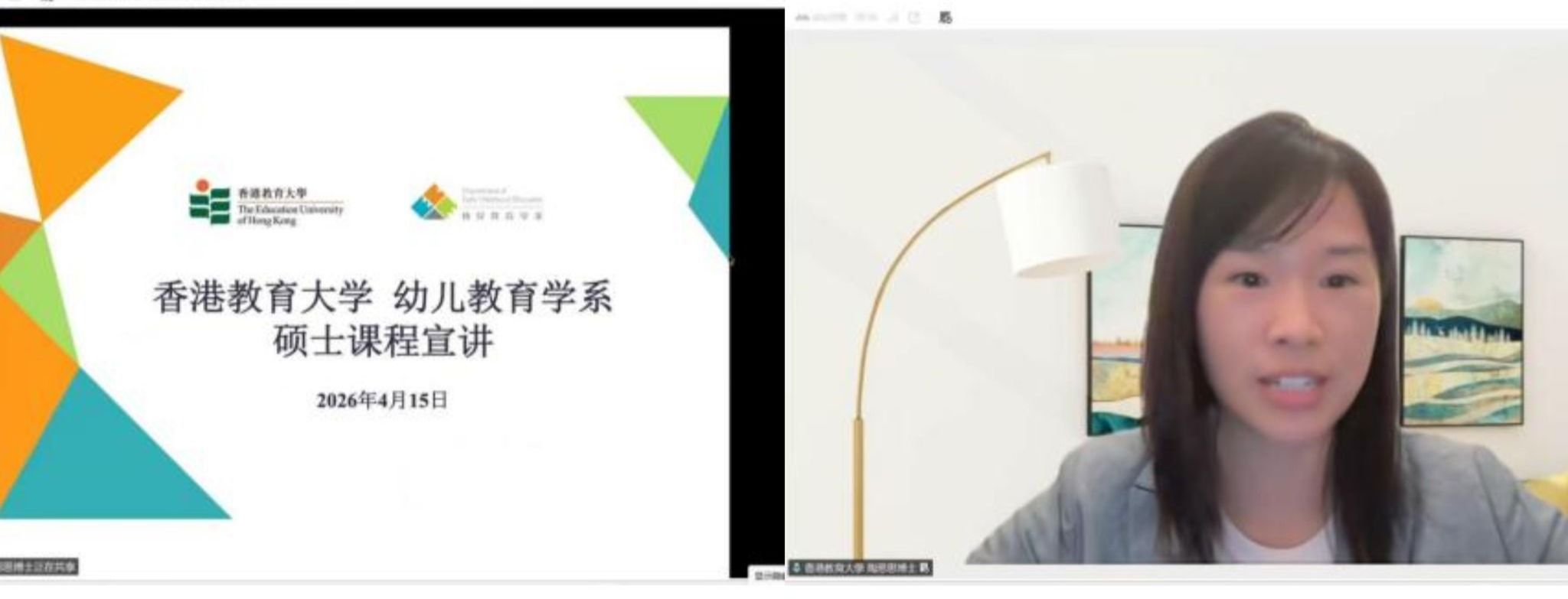 会议第二阶段聚焦“香港教育大学学前教育研究生招生”。主要由我校学前教育专业教研室主任宗勤瑶组织,香港教育大学儿童与家庭教育课程负责人陶思思博士就研究生课程的设置、入学要求、学习路径、就业前景等进行了系统讲解。她指出,香港教育大学的硕博毕业生就业去向广泛,尤其受到教育机构、研究单位的青睐。
