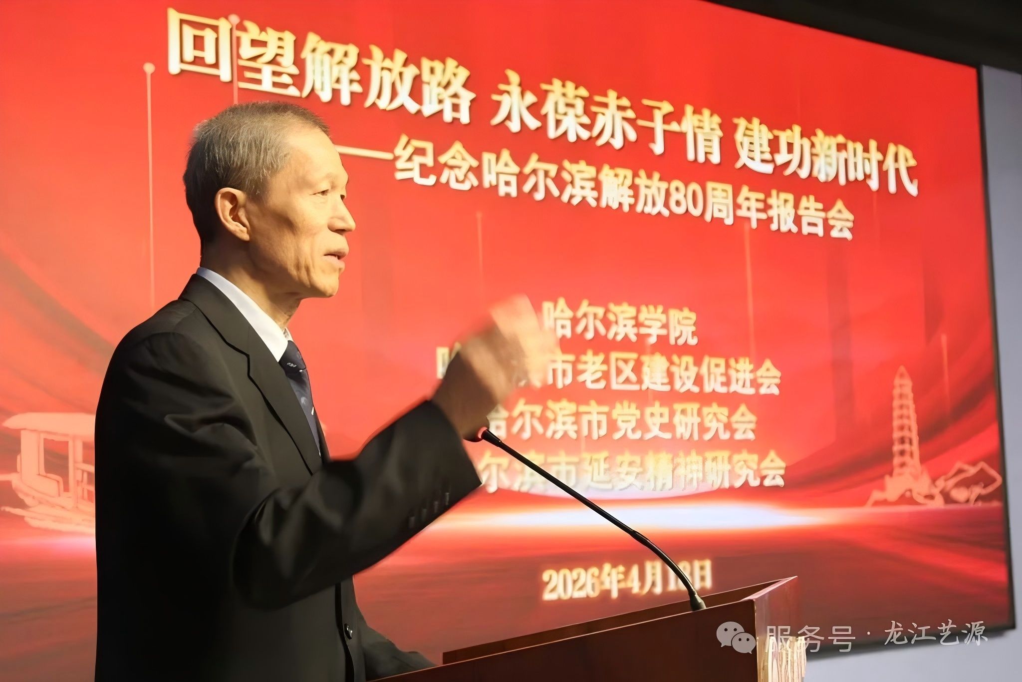 (文/孙溪曼)4月18日上午,“回望解放路 永葆赤子情 建功新时代”——纪念哈尔滨解放80周年主题报告会在哈尔滨学院举行。本次活动由哈尔滨学院联合哈尔滨市老区建设促进会、哈尔滨市党史研究会暨哈尔滨市延安精神研究会共同主办,旨在重温红色历史、传承革命精神、凝聚奋进力量。