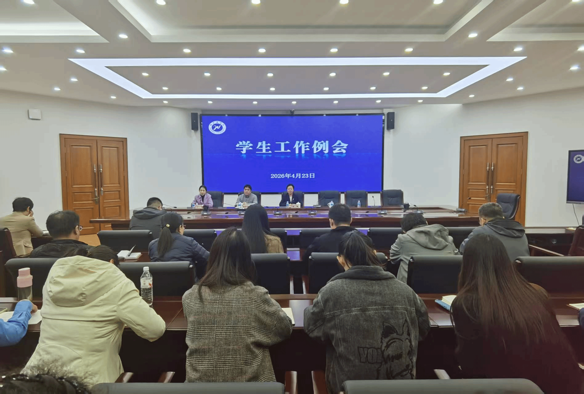 (文/夏广慧)4月23日,学校在党政办公楼404会议室,召开学生工作例会。校党委副书记李娜、校长助理潘俊豪出席会议。学生处科级以上干部、二级学院党委(党总支)副书记、全体辅导员参加。会议由学生处处长于迪主持。