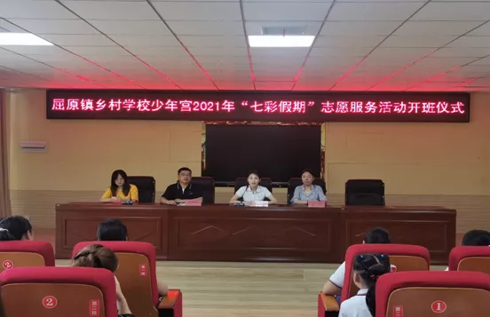 屈原镇乡村学校少年宫2021年“七彩假期”志愿服务活动开班仪式现场