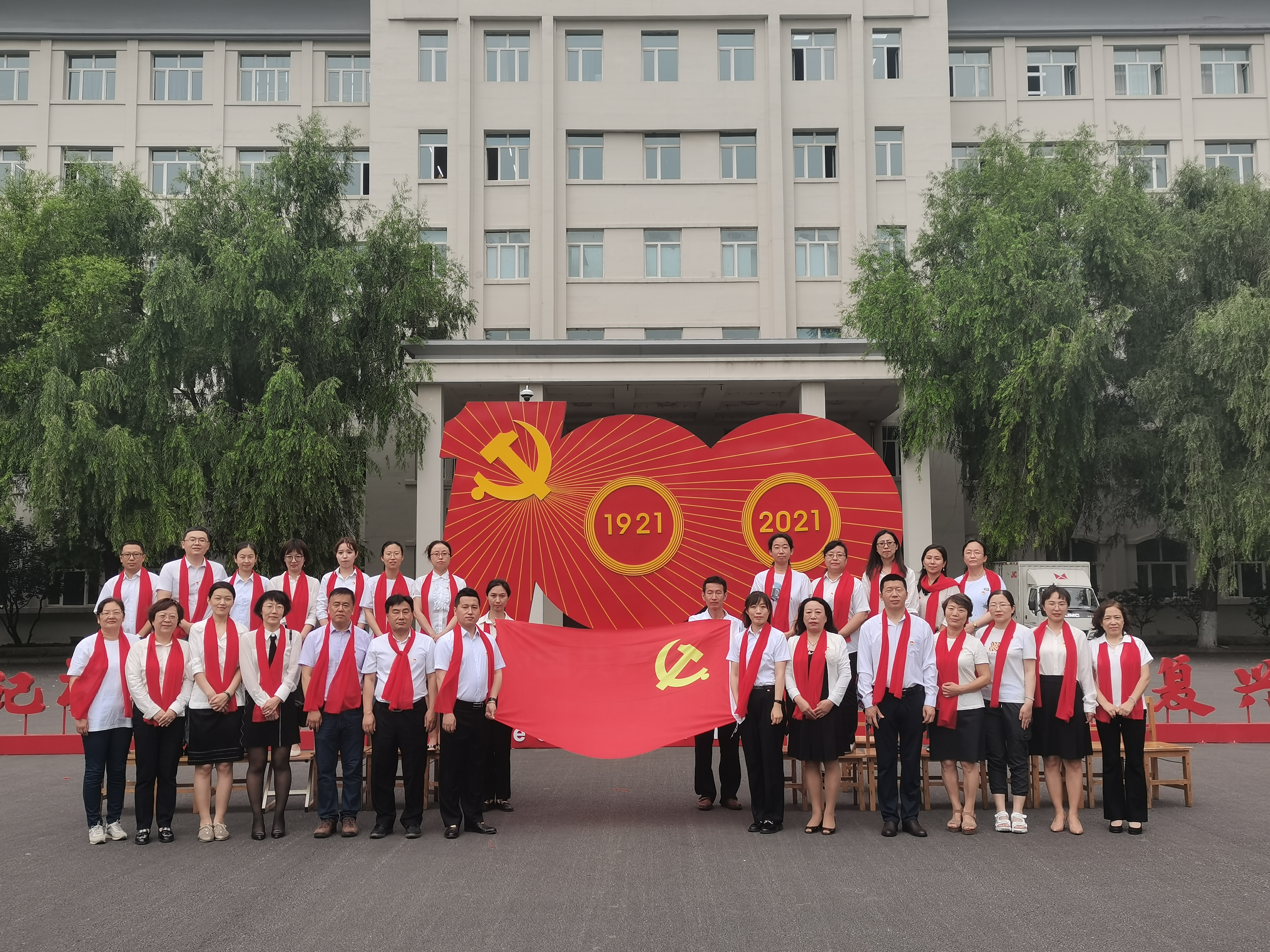 接下来,进行了“庆七一唱红歌”活动,以此激发党员教师爱党爱国爱人民爱社会主义的热情,振奋精神、凝聚力量,活动在全体党员教师共同合唱《没有共产党就没有新中国》中完美落幕。最后,全体党员教师到1号楼前在建党100周年图标前合影留念。