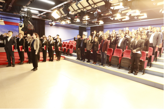 为全面贯彻习近平新时代中国特色社会主义思想和党的十九大精神,深入领会习近平总书记在党史学习教育动员大会上的重要讲话精神和全国教育工作会议精神,进一步推进我校辅导员队伍专业化、职业化建设,增强辅导员职业认同感和荣誉感,4月9日上午,我校在1号教学楼第一演播室召开2021年新辅导员入职仪式。学生工作部部长王海涛,副部长丛全喜、庞哲,全体辅导员及学生工作部工作人员参加仪式。仪式由学生工作部副部长庞哲主持。