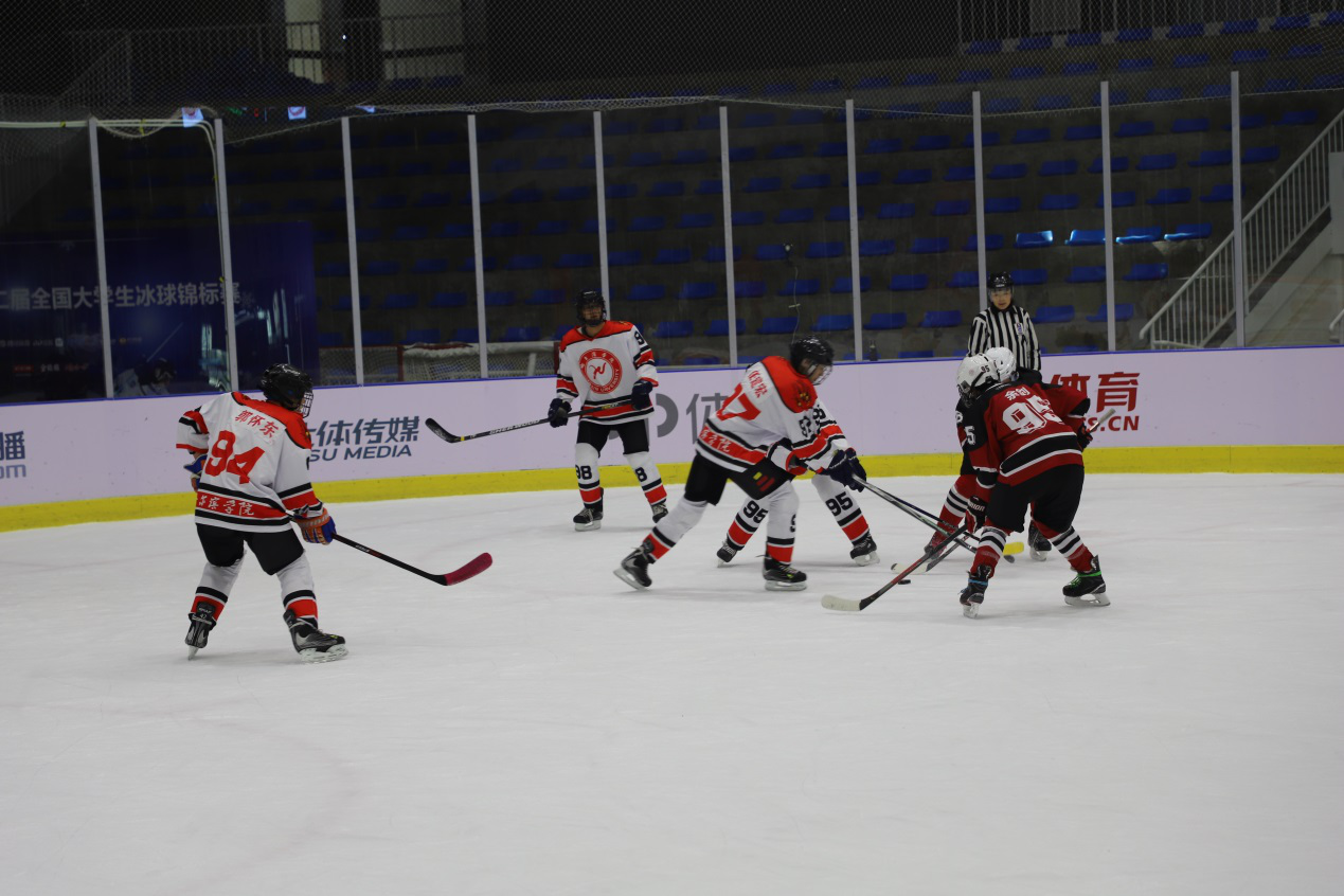 比赛期间,我校冰球队对战众多国内高水平院校。首场比赛对战清华大学,在对方连入数球的情况下,我校队员并未放弃,仍然顽强对抗,队员孙博文上演帽子戏法予以回击,虽然最终落败,但我校队员的体育精神赢得了在场裁判及队员的一致赞扬。此后,我校对战重庆科技学院。在赛场战况胶着的情况下,我校队员任建宏率先破门打破僵局,而后重庆科技学院将比分扳平并拖入加时赛。我校队员徐洋洋抓住机会打入绝杀进球。最终,我校以2比1的比分取得胜利。在对战河北传媒大学、中国人民大学比赛中,我校冰球队队员也积极应战,奉献了一场场精彩的比赛。
