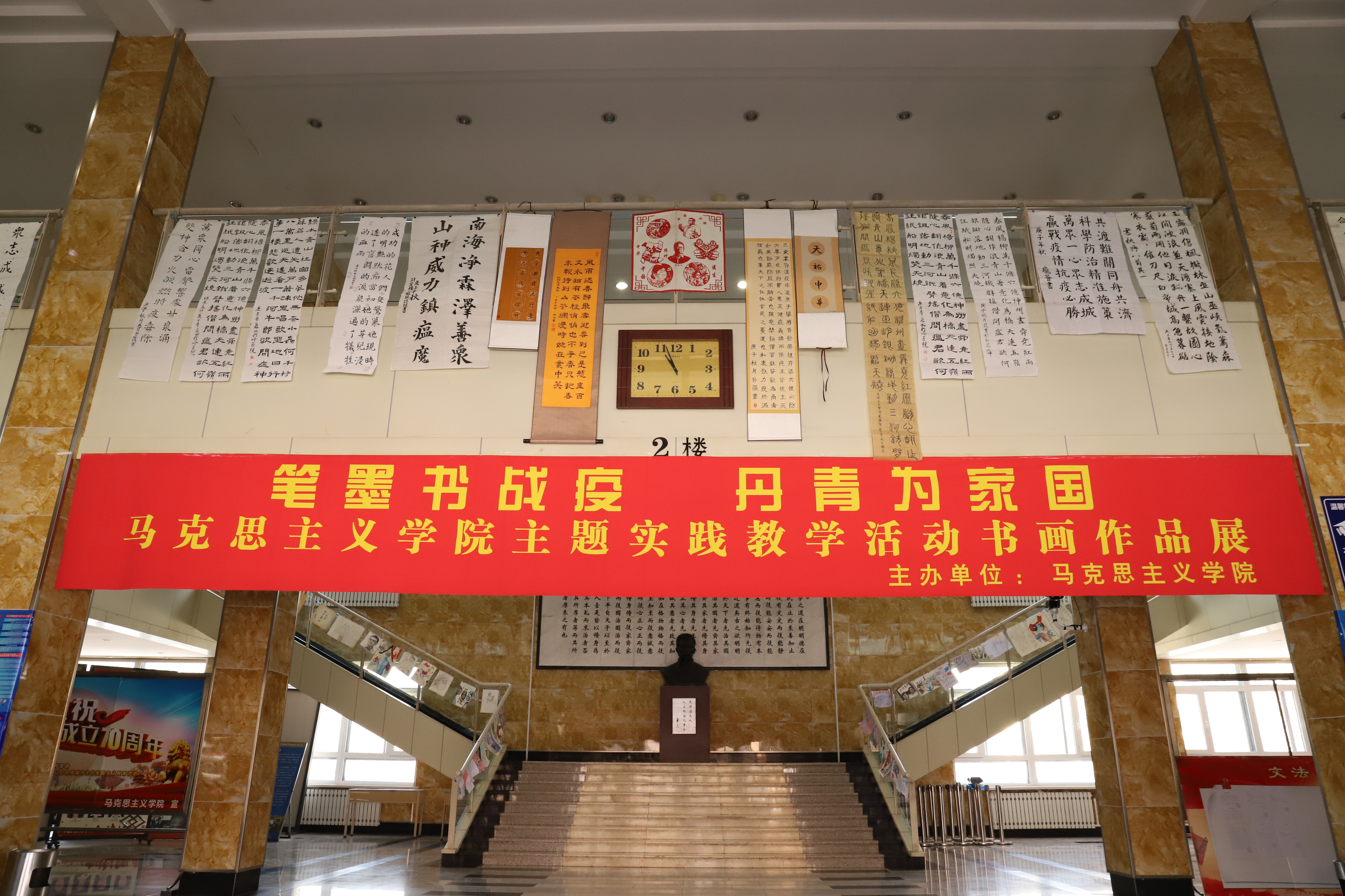 马克思主义学院围绕着“抗疫防疫”实践教学主题,开展了系列实践教学活动,参观侵华日军第七三一部队遗址纪念馆、组织“抗疫防疫 健康校园”千人徒步大赛等。2020年11月25日,马克思主义学院组织开展“笔墨书战疫 丹青为家国”的书画展活动,本次书画展活动旨在让广大青年学生更好的弘扬“抗疫精神”,增强对新时代的战疫英雄的了解,铭记英雄、学习英雄,增强爱国主义情怀。