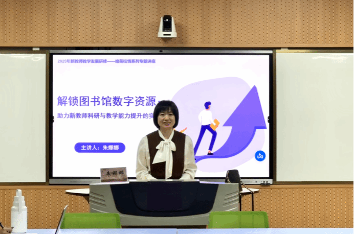 专题讲座环节,朱娜娜以《解锁图书馆数字资源:助力新教师科研与教学能力提升的实用课》为主题,从文献资源、场馆布局、开馆时间及相关须知等四个方面,介绍了我校图书馆建设基本情况和各类图书资源概况;结合图书馆数字资源的类型及功能,讲解了图书馆数字资源查找方式及访问路径,重点围绕中国知网、读秀、超星发现系统、Worldlib人工智能在线咨询等教师常用数据平台的个性化功能和使用方法进行了全面讲解,为我校教师利用优质数字资源和工具助力教学科研提供了有益指导。