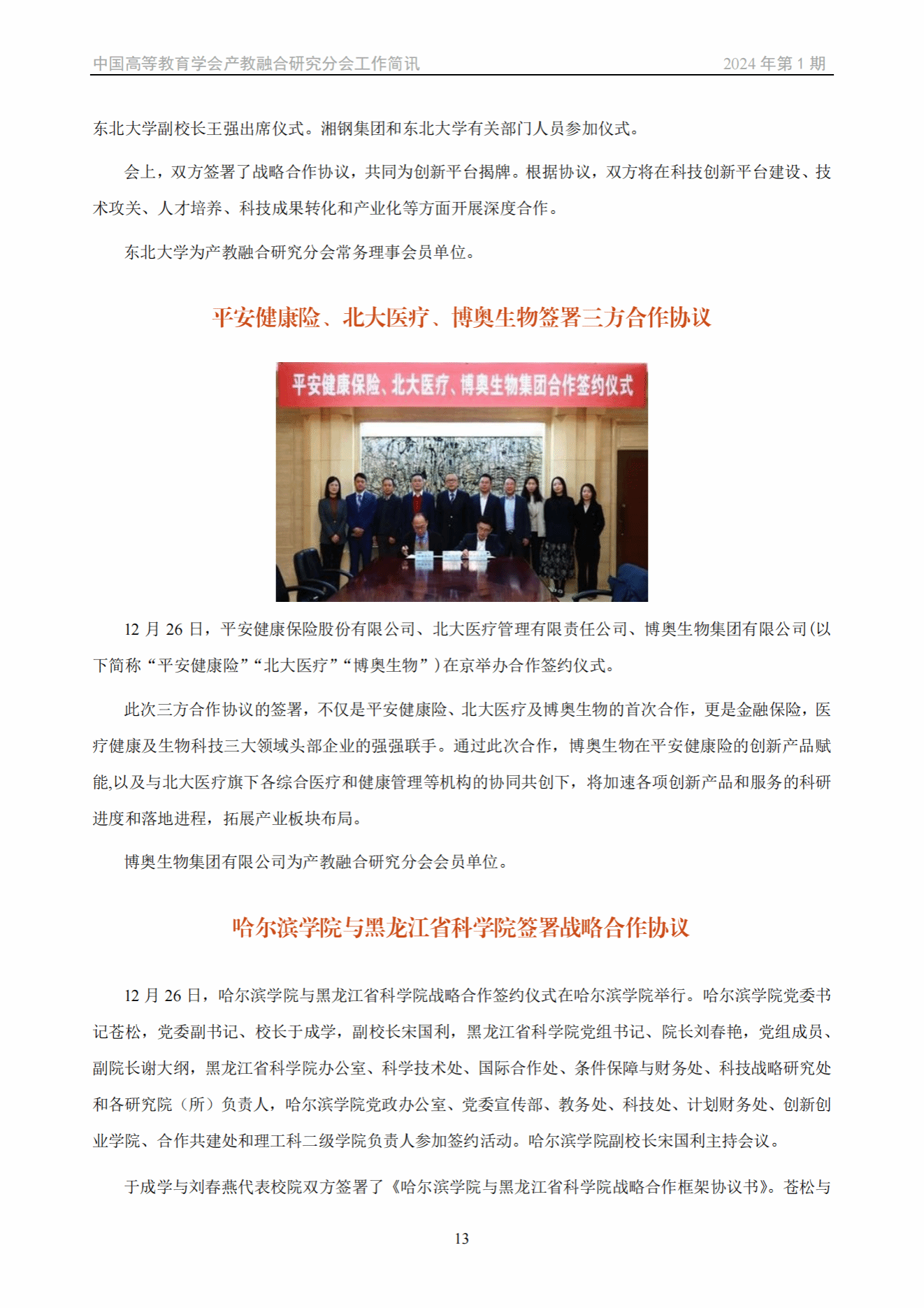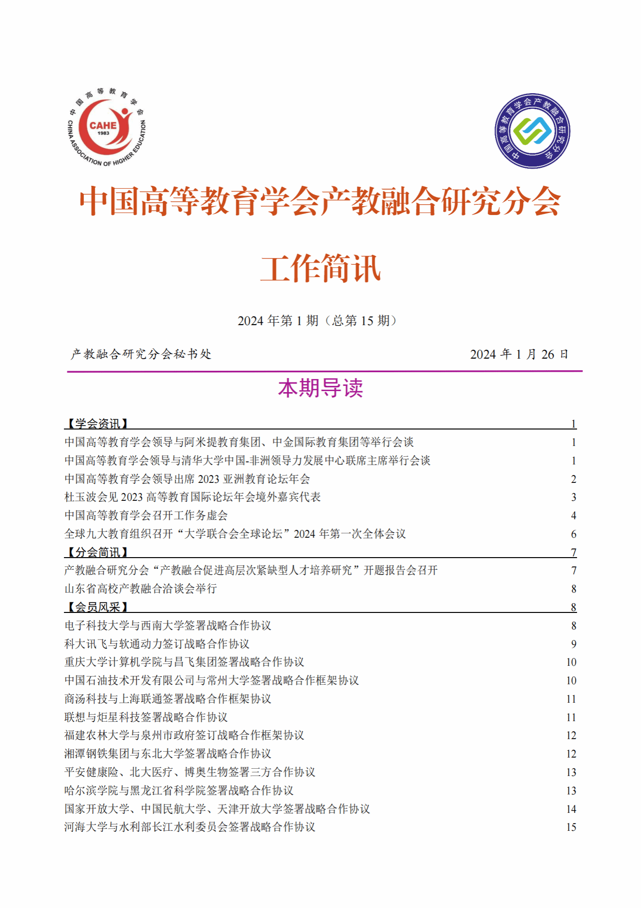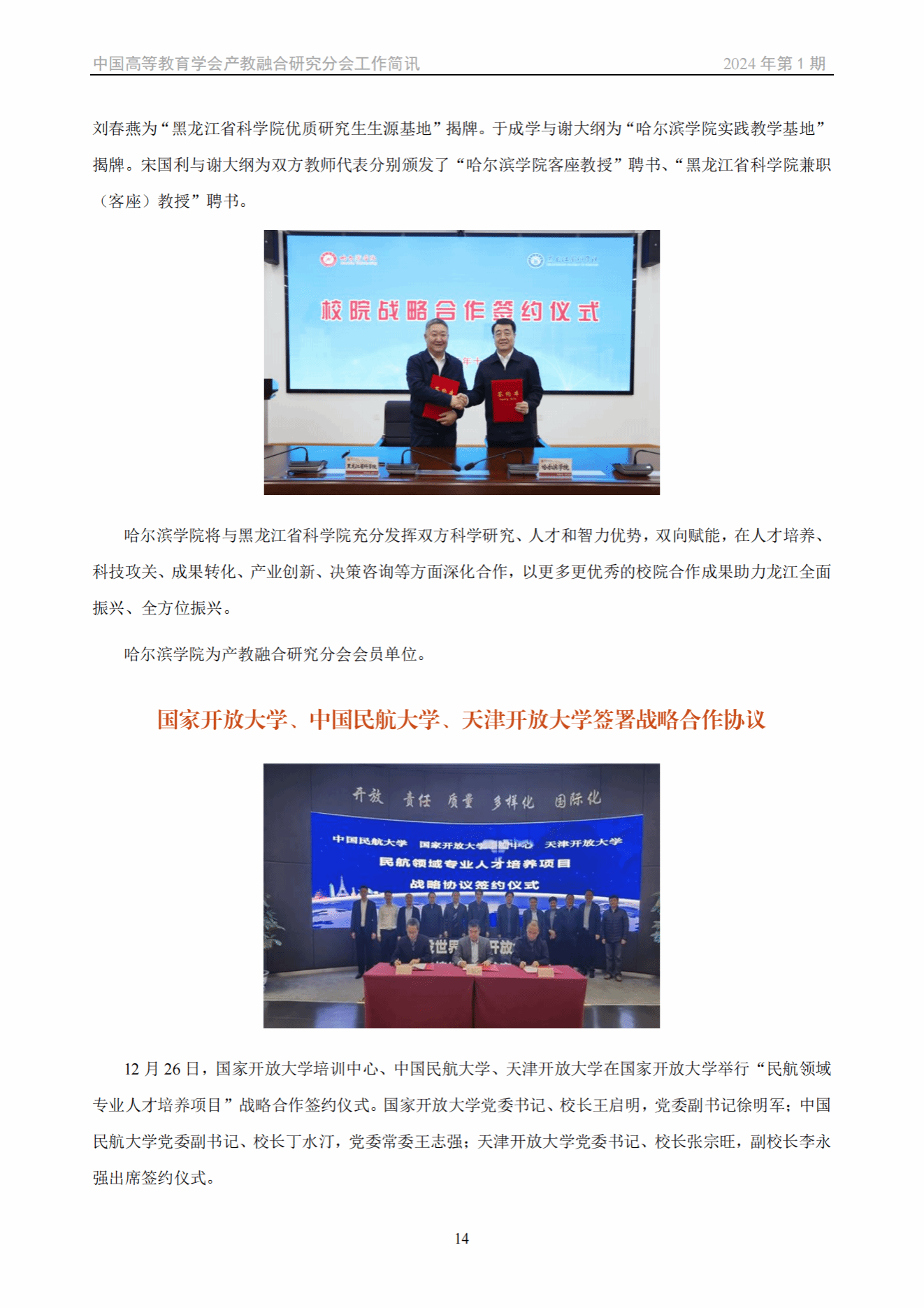 近日,中国高等教育学会产教融合研究分会2024年第1期工作简讯(总第15期)以《哈尔滨学院与黑龙江省科学院签署战略合作协议》为题对我校产教融合工作进行了报道。
