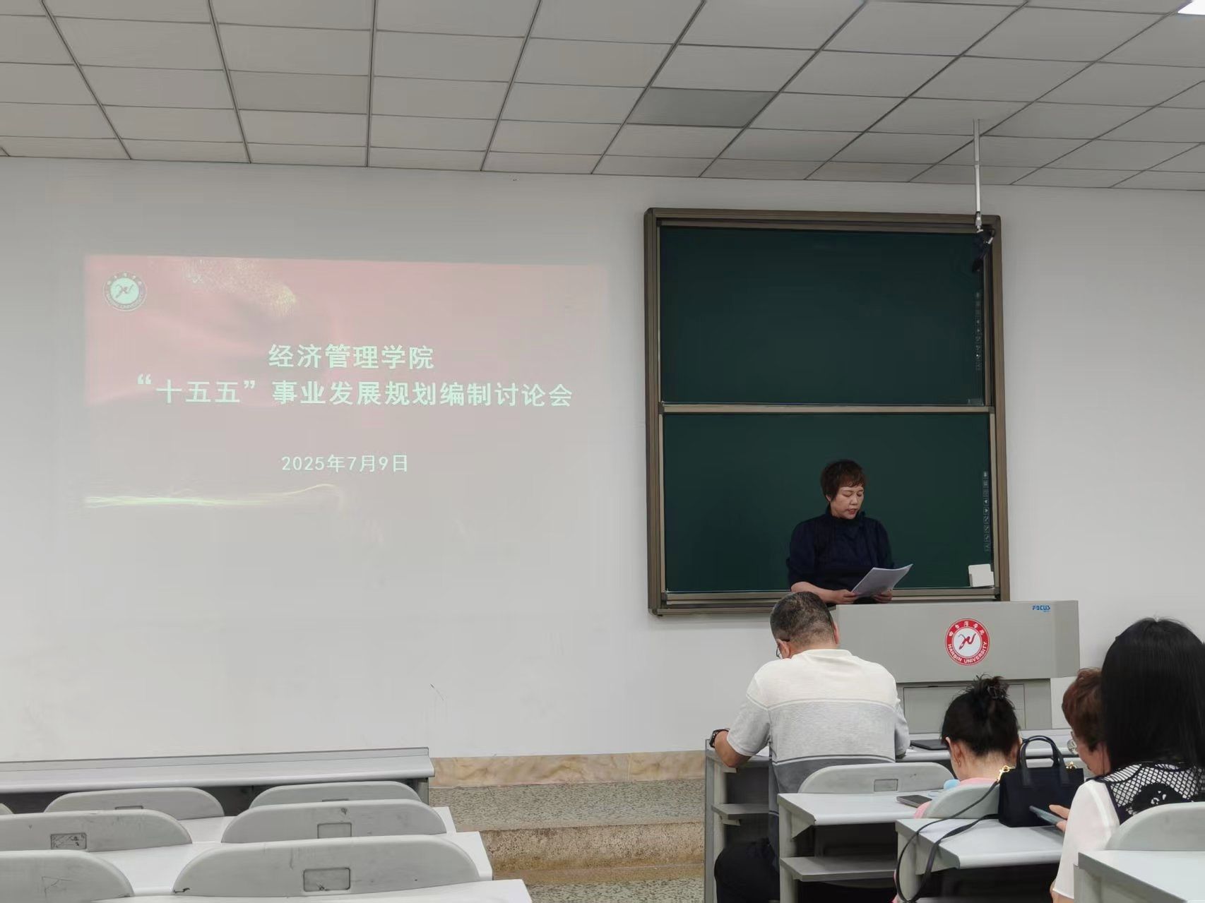 (文/迟生茂) 7月9日下午,经济管理学院“十五五”事业发展规划编制工作讨论会在8102教室召开。学院领导班子及全体教师参加会议,全方位总结“十四五”发展成效,共绘“十五五“高质量发展蓝图。会议由学院党委书记沙迪主持。
