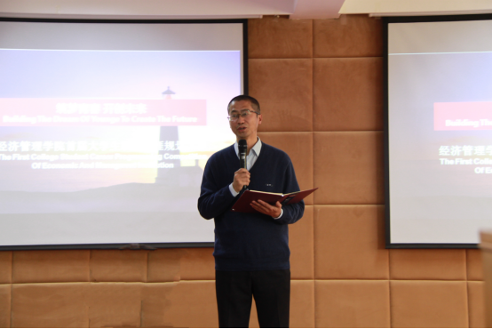4月1日下午,“筑梦青春,开创未来”经济管理学院首届大学生职业生涯规划设计大赛在7号楼7603室举行。本次大赛由校招生就业处主办,经济管理学院承办。招生就业处副处长张成强,经济管理学院副院长程宇,商务经济系专业教师魏巍、地理与旅游学院学工办主任邢珺及特邀校企合作单位代表贯日传媒客户总监潘小敏担任此次大赛评委,经济管理学院党总支书记孙亮、招生就业处就业中心主任柳鸿莉、辅导员老师及学生代表共同观看了比赛。