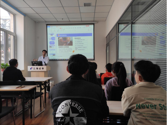 4月10日,刘雪峰老师的带领学习小组成员赴江海证券开展首次培训活动。江海证券新疆大街营业部付敬昕总经理为学员们详细介绍了营业部基本情况并带领参观。哈尔滨平房区志愿服务联合会科普部会员公司马海生总经理,为给学生们做了题为“量化投资交易实践路径”的讲座。讲座中,马总向学生们做了量化交易演示,详细阐述了量化投资的设计步骤,并指导学生作为初学者该如何学习量化投资。
