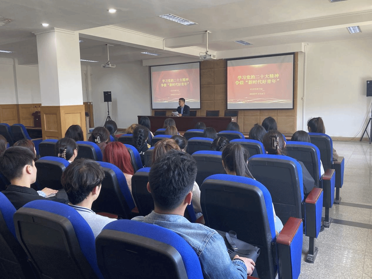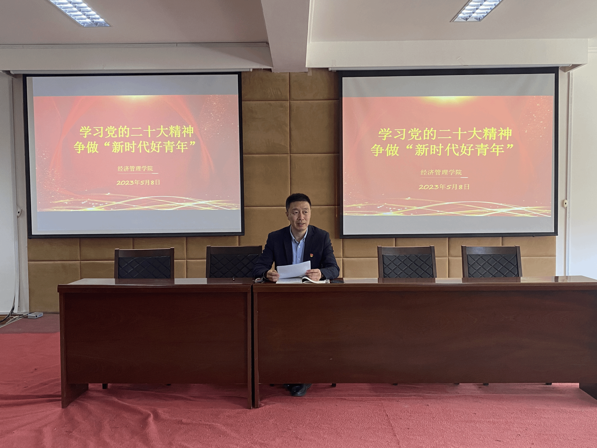 (文/高晶)为深入学习贯彻党的二十大精神,进一步落实党的二十大报告中强调的“全党要把青年工作作为战略性工作来抓,用党的科学理论武装青年,用党的初心使命感召青年,做青年朋友的知心人、青年工作的热心人、青年群众的引路人。”5月8日,经济管理学院在7603会议室开展“学习党的二十大精神,争做‘新时代好青年’”主题党课。本次党课由经济管理学院党委书记孙亮主讲,行政支部党员、全体辅导员、学生党员代表和积极分子代表参加学习。