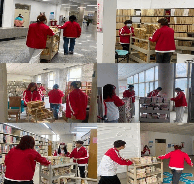 志愿者们在图书馆老师的指导下,协助图书馆管理员开展日常工作。工作内容主要为搬运图书、运输图书、分类摆放等。整理是一项脑力劳动兼体力劳动的工作,有时一本书的摆放需要转好几个圈才能找到正确位置,尽管这样也冲不散志愿者们的热情。志愿者们分工明确,相互配合,整个过程井然有序,各司其职,耐心细心的工作态度得到了管理员的一致好评。