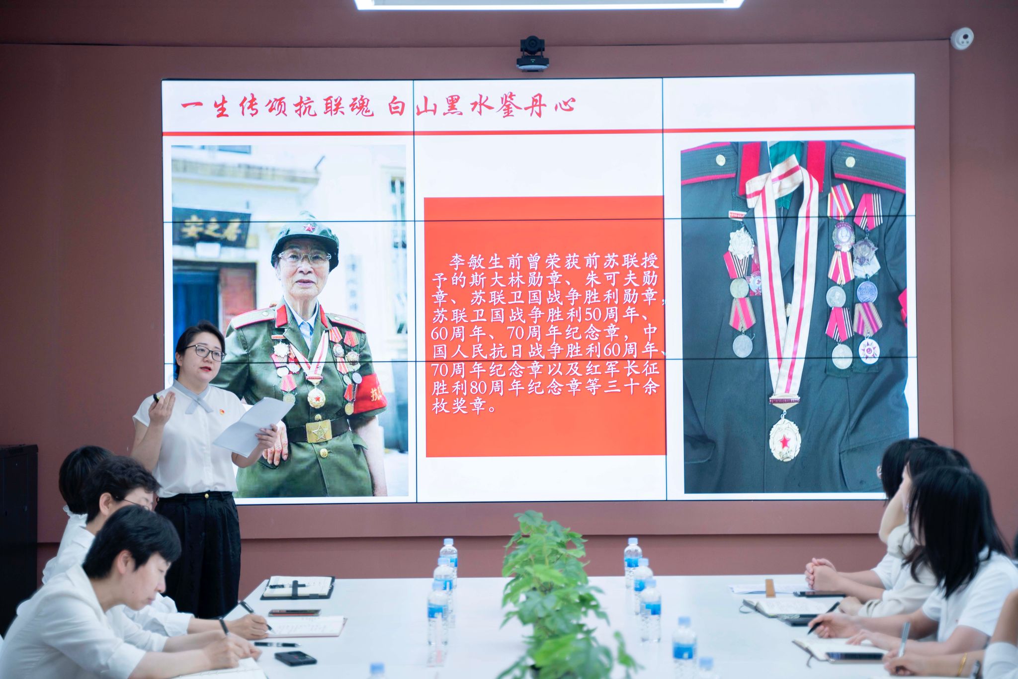 哈尔滨市青年讲师团讲师、东北抗联战士后代、组织部陈晨深情讲述《一生传颂抗联魂 白山黑水鉴丹心》故事,她用生动的语言、鲜活的事例、真挚的情感诠释李敏等无数抗联战士的英勇无畏和风雪征程。与会同志沉浸式的感受到中国共产党领导的东北抗日联军在14年抗击日本军国主义侵略的艰苦斗争历程。