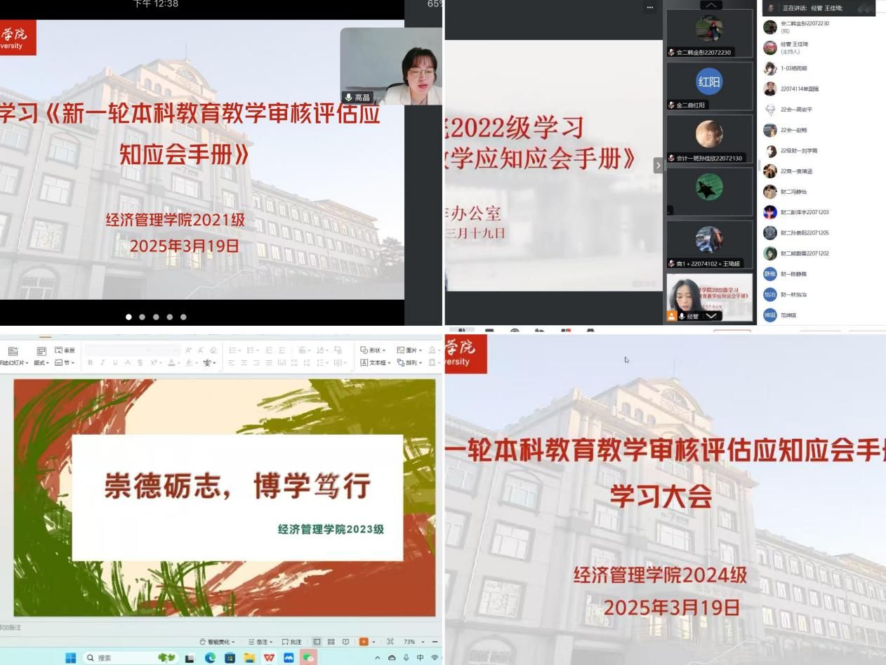 (文/尚丹)为扎实推进学校本科教育教学审核评估工作,3月17日至25日,经济管理学院通过线上线下相结合的方式,分层分类开展专题培训活动,确保全院师生深刻理解评估要求,形成“认识到位、责任到位、学习到位、配合到位、工作到位”的评建工作格局。