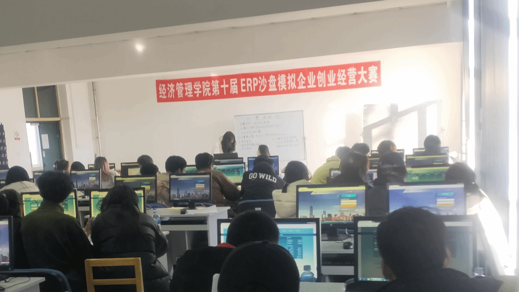 (文/赵彦龙)12月6日下午,由经济管理学院主办,经济管理学院商务经济系、ERP沙盘协会承办的“第十届ERP沙盘模拟企业创业经营大赛”的七号楼二楼实验室成功开赛。此次大赛共有来自与我校4个学院、7个专业的19支团队80名选手参加 ,大赛从组织报名、培训、开幕式、到现场比赛历时近三个月。
