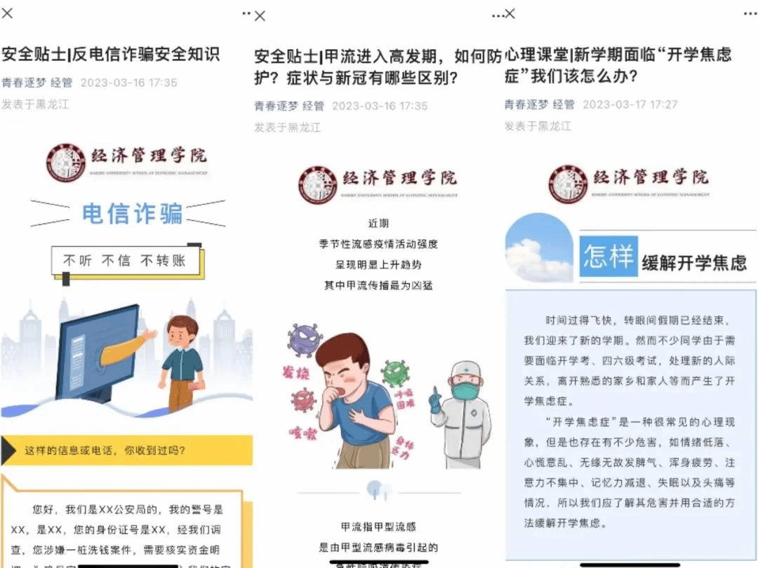 各年级通过主题班会、谈心谈话等形式,面向全体学生开展“每个人都是自己健康第一责任人”教育。发挥经济管理学院自媒体平台和班级、公寓等组织、体系优势,教育引导学生坚持落实防疫“三件套”。通过推送相关内容,使同学们了解诺如病毒、甲型流感,加强诺如病毒感染、流感、水痘、手足口病等学校易发、多发传染病的症状监测。